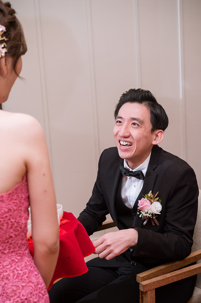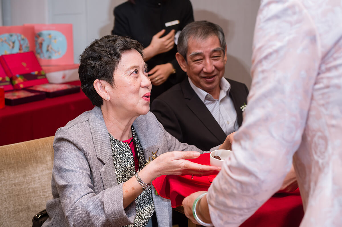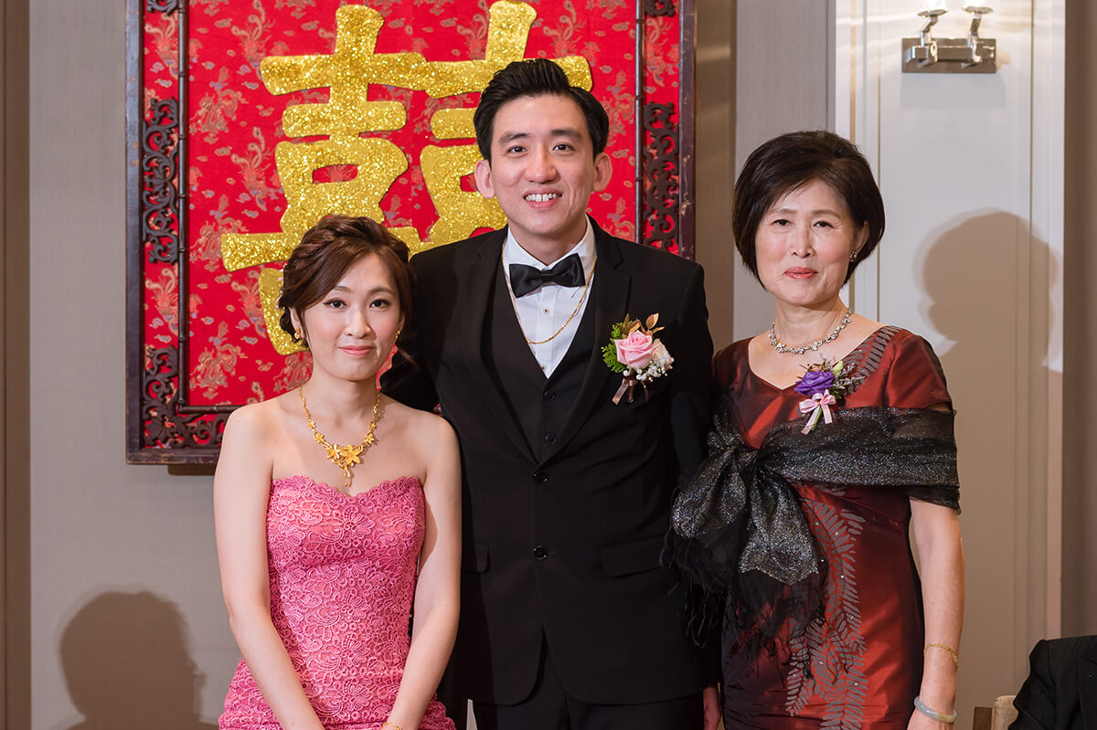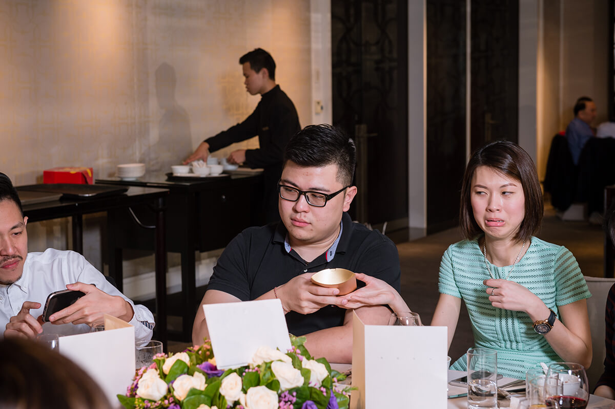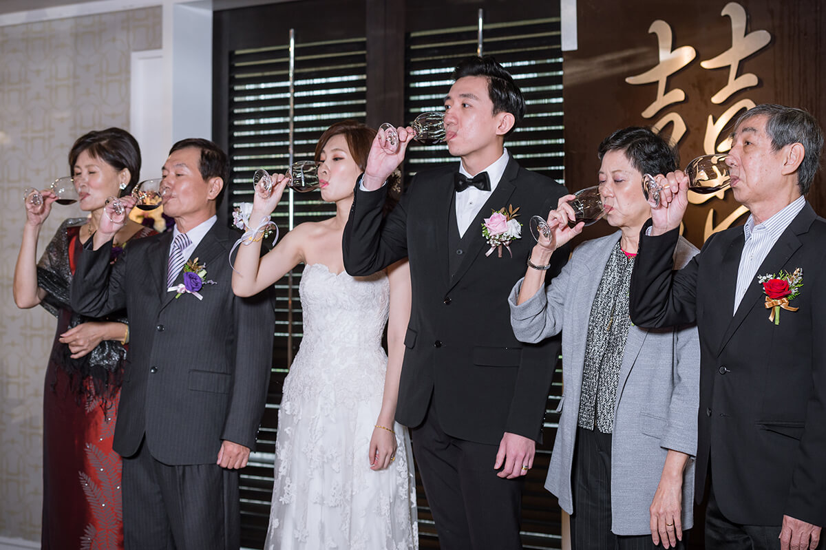 婚禮的過程中,由於新娘之後就要嫁到新加坡去,女方父母的表情十分不捨。敬酒的時候,新加坡來的朋友們當然會用新加坡的敬酒儀式,就是要賓客齊聲的喊乾杯直到沒有氣,聲音喊的越大聲和尾音拉越長新人就會越幸福,讓平時在台灣拍攝的我們感覺很新鮮。