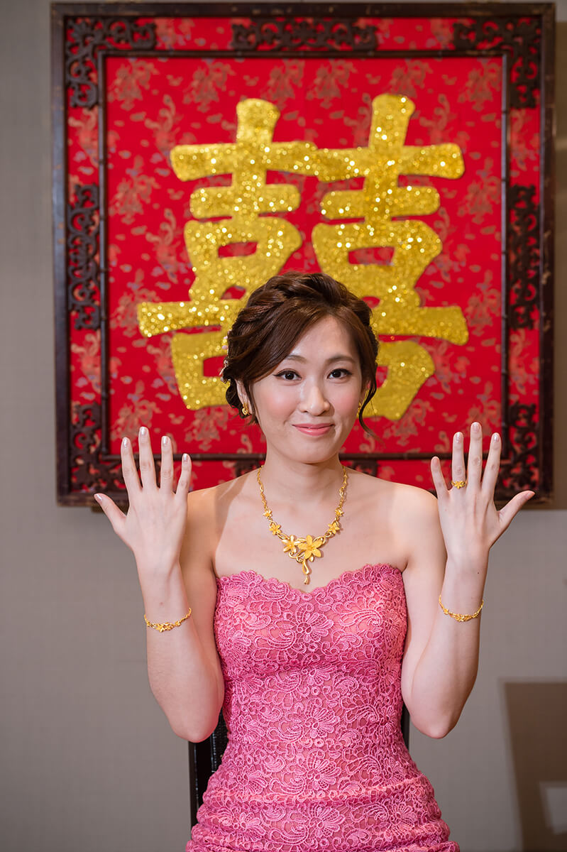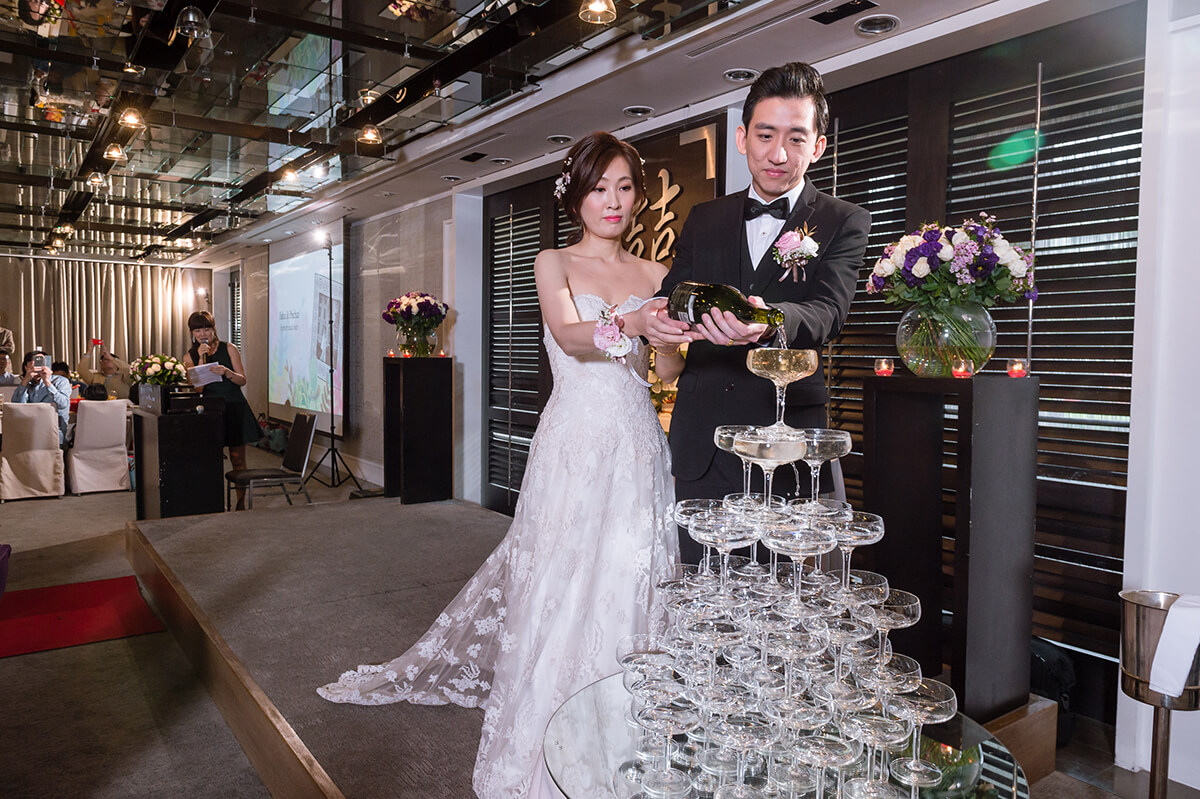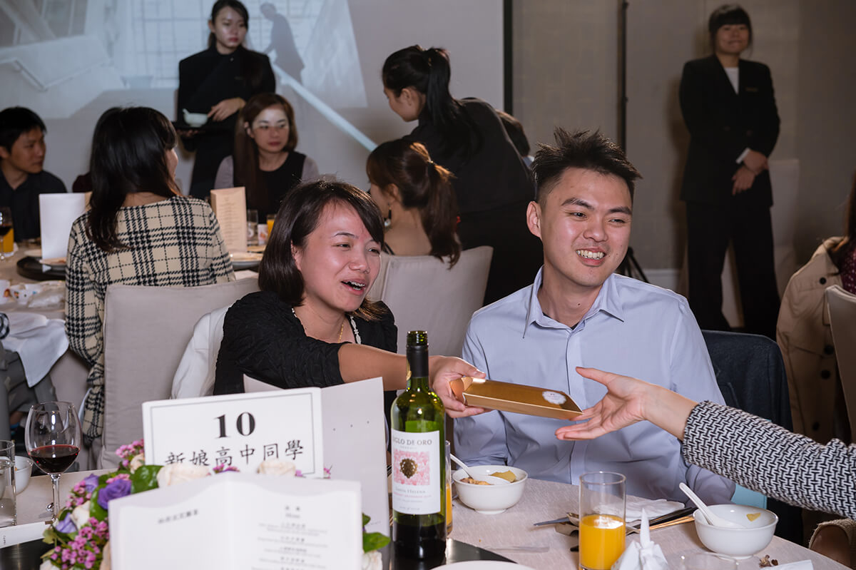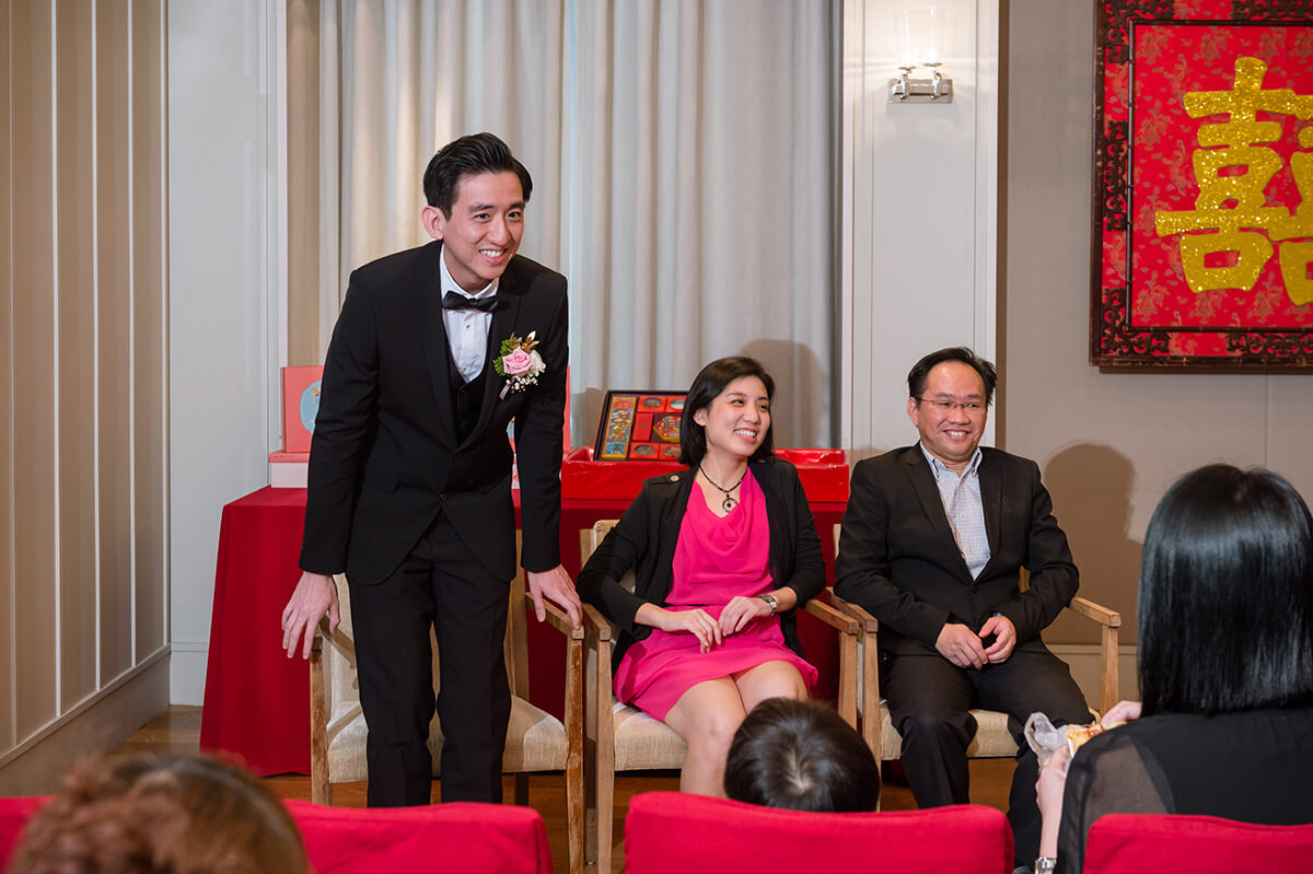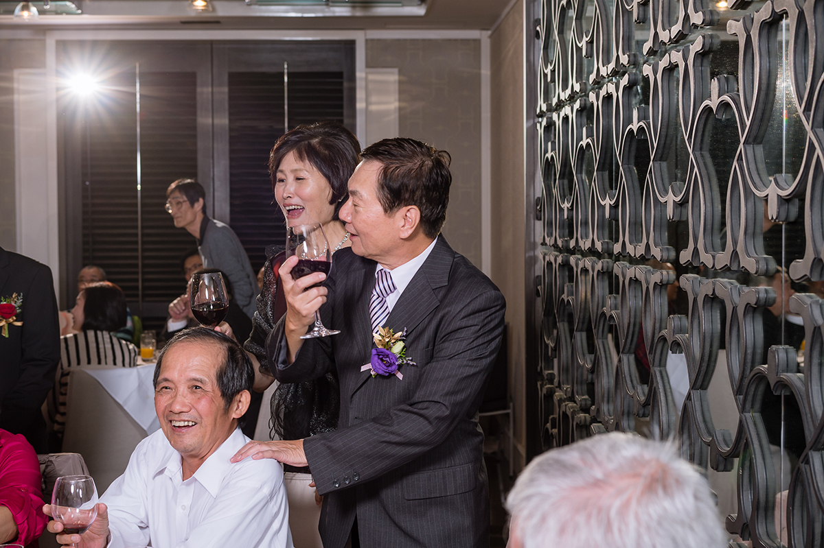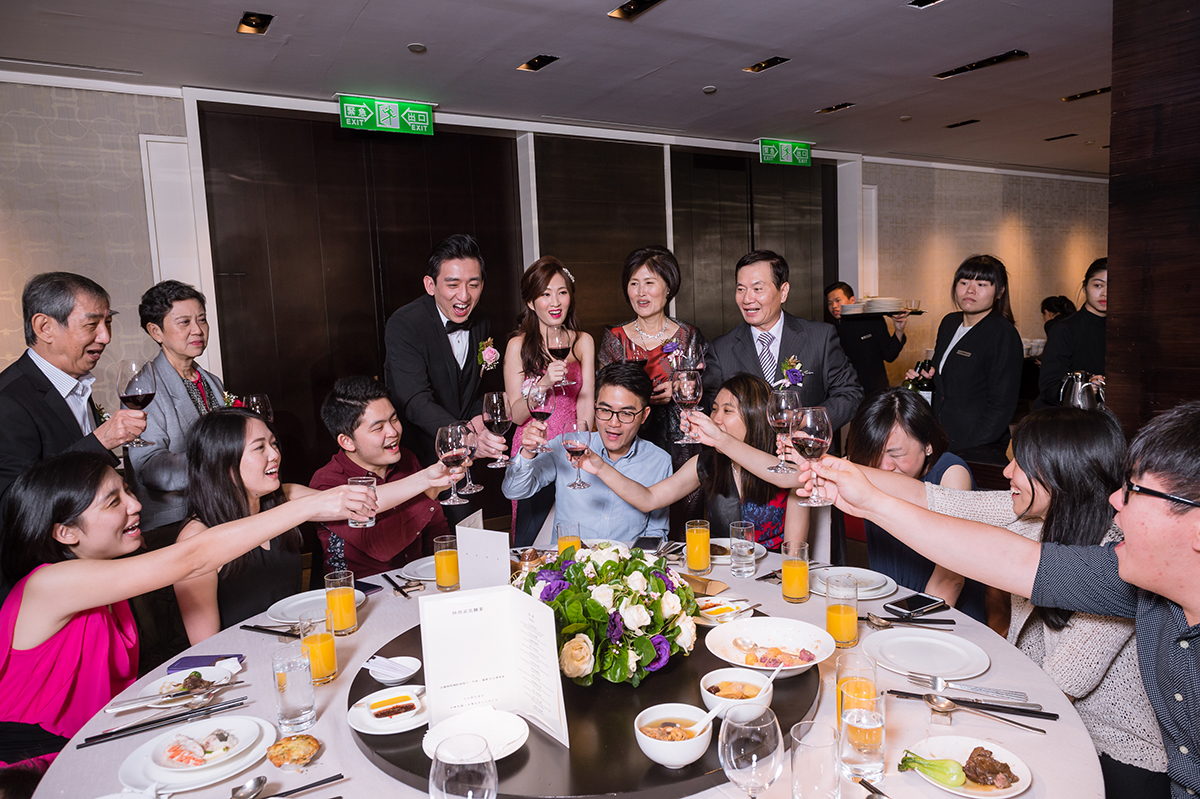 婚禮的過程中,由於新娘之後就要嫁到新加坡去,女方父母的表情十分不捨。敬酒的時候,新加坡來的朋友們當然會用新加坡的敬酒儀式,就是要賓客齊聲的喊乾杯直到沒有氣,聲音喊的越大聲和尾音拉越長新人就會越幸福,讓平時在台灣拍攝的我們感覺很新鮮。