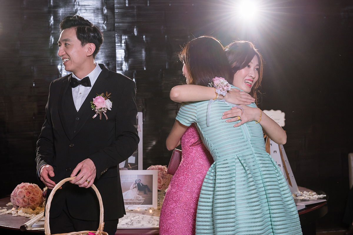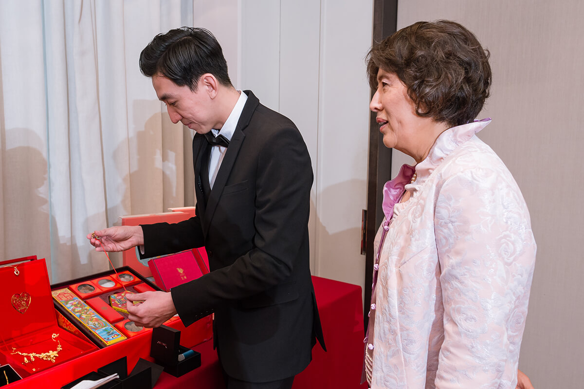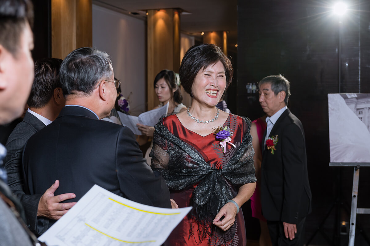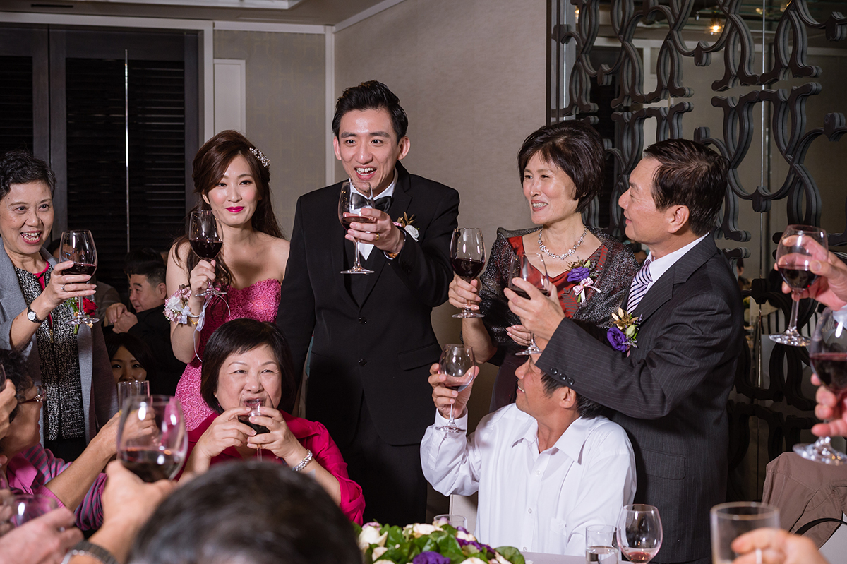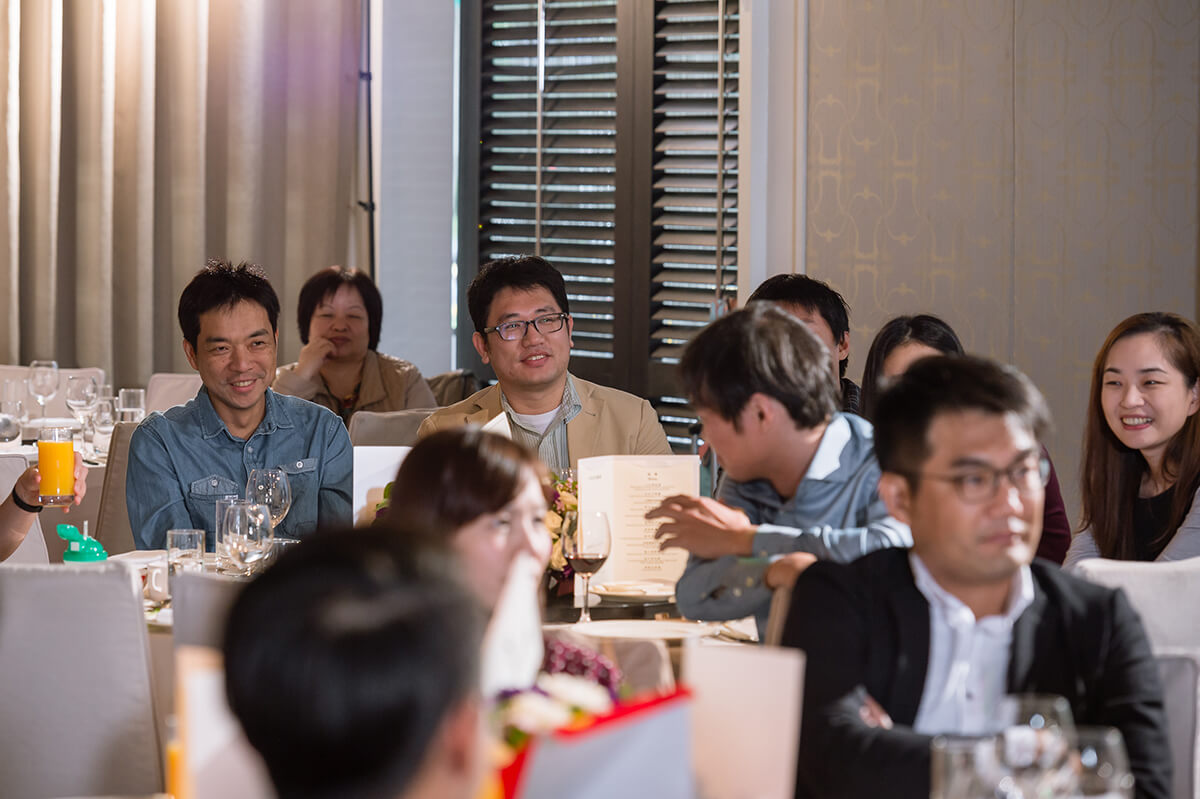 婚禮的過程中,由於新娘之後就要嫁到新加坡去,女方父母的表情十分不捨。敬酒的時候,新加坡來的朋友們當然會用新加坡的敬酒儀式,就是要賓客齊聲的喊乾杯直到沒有氣,聲音喊的越大聲和尾音拉越長新人就會越幸福,讓平時在台灣拍攝的我們感覺很新鮮。