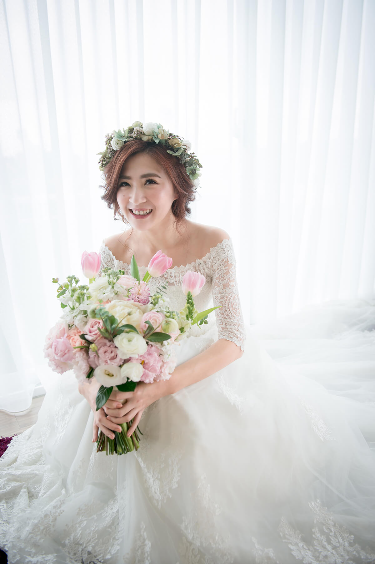 婚禮那天阿思太美,太陽公公都躲起來了…(笑),因此,我們的目光全都落在阿思身上。
