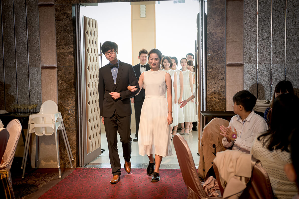 為了能跟遠道而來的親友們多一些相處的時間,新娘在宴會中只換一套衣服,