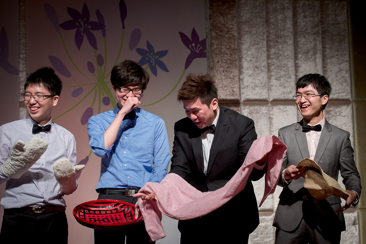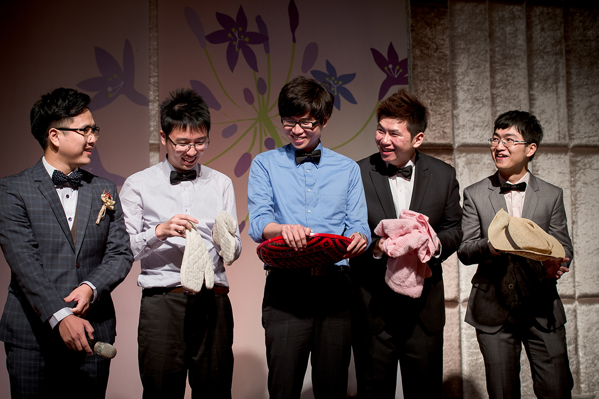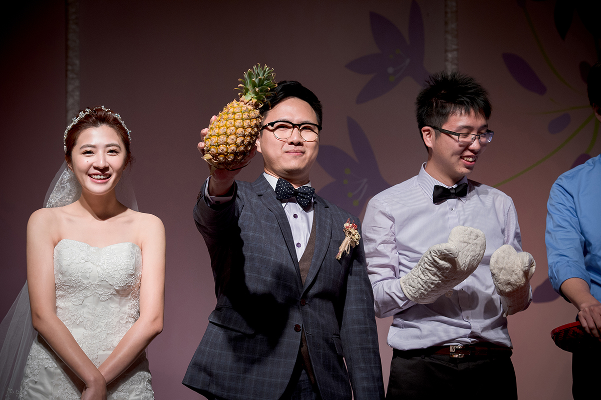 為了方便大家接住鳳梨,新人貼心地準備各種工具,害我們修圖時一直放鄧紫棋的歌-「黑鳳梨」。
