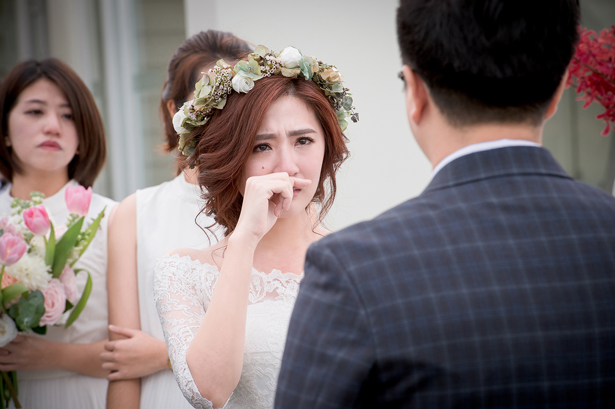 站在一旁的伴娘也跟著哭了,新娘阿思哭的樣子相當美,讓我們家小助理一直讚嘆不已。