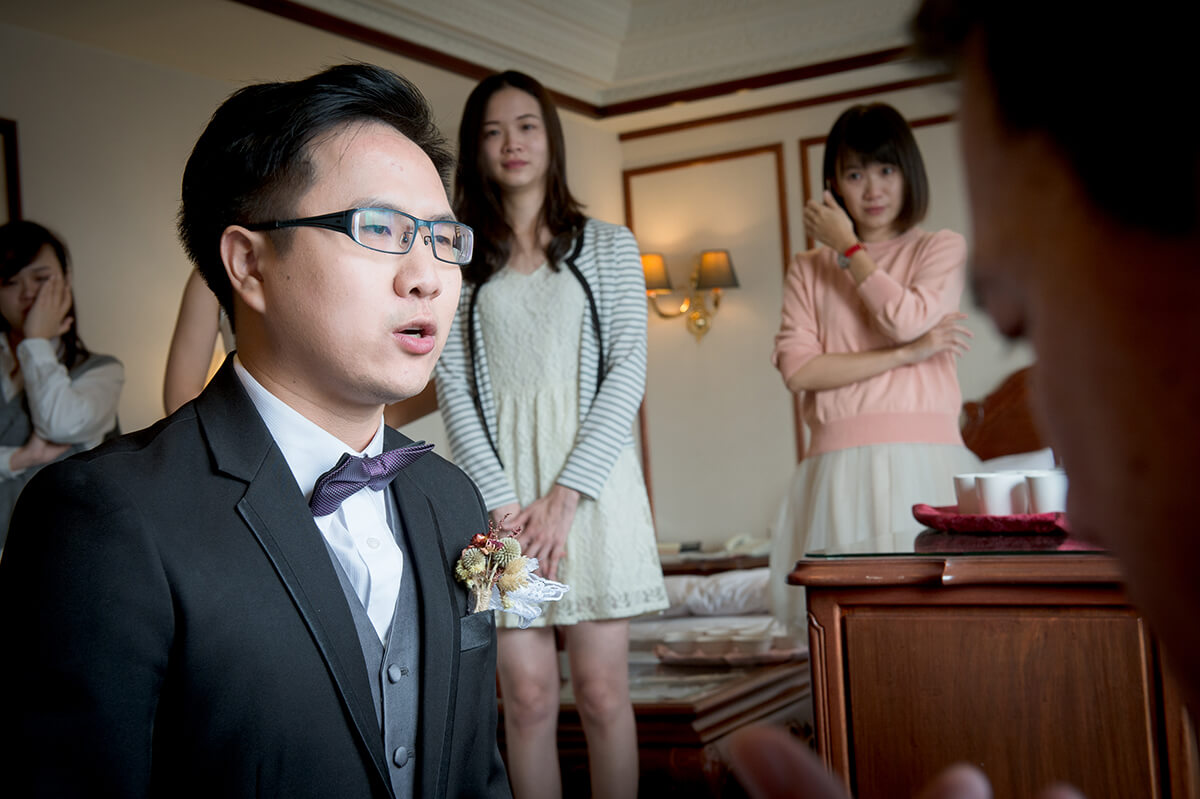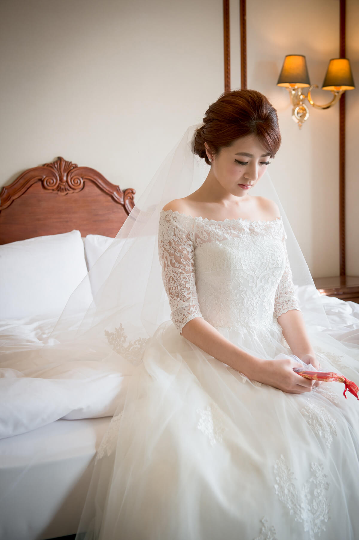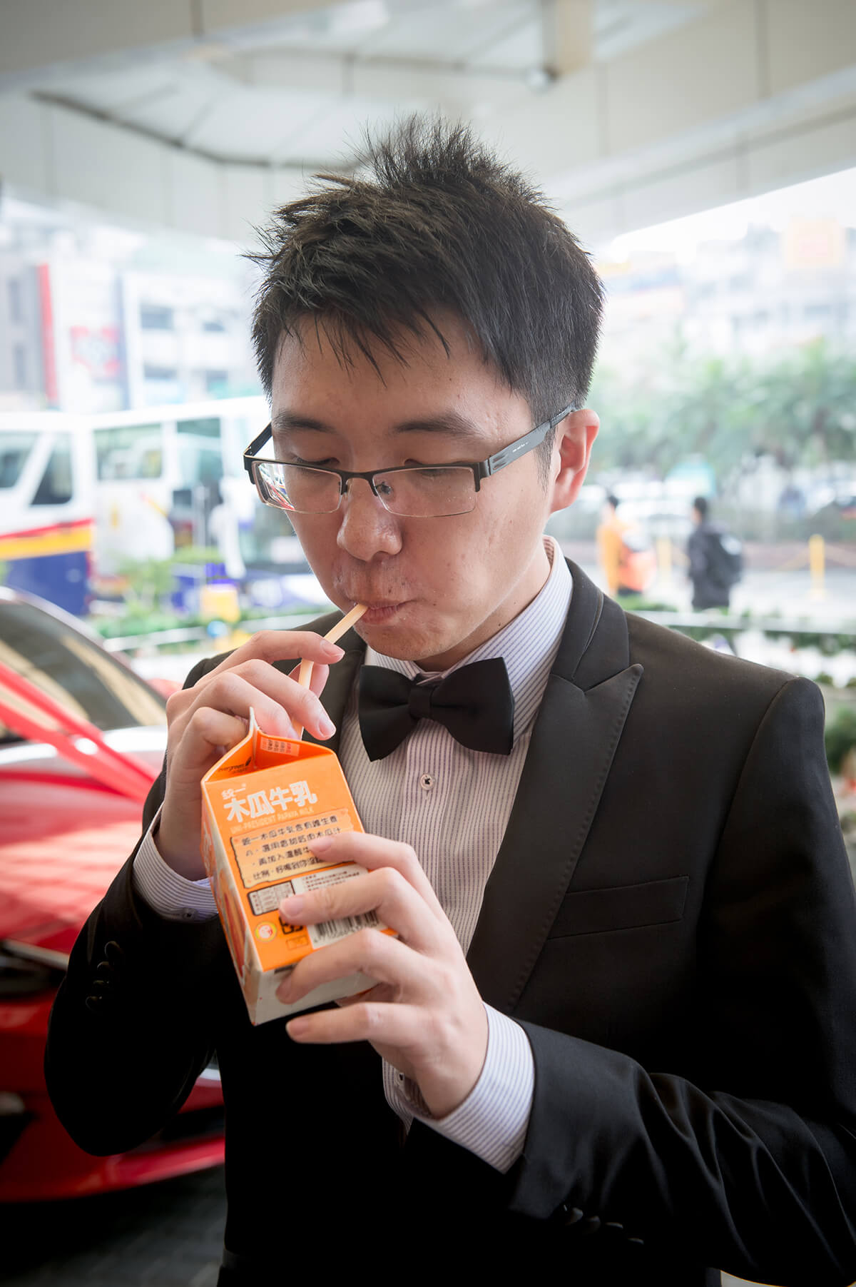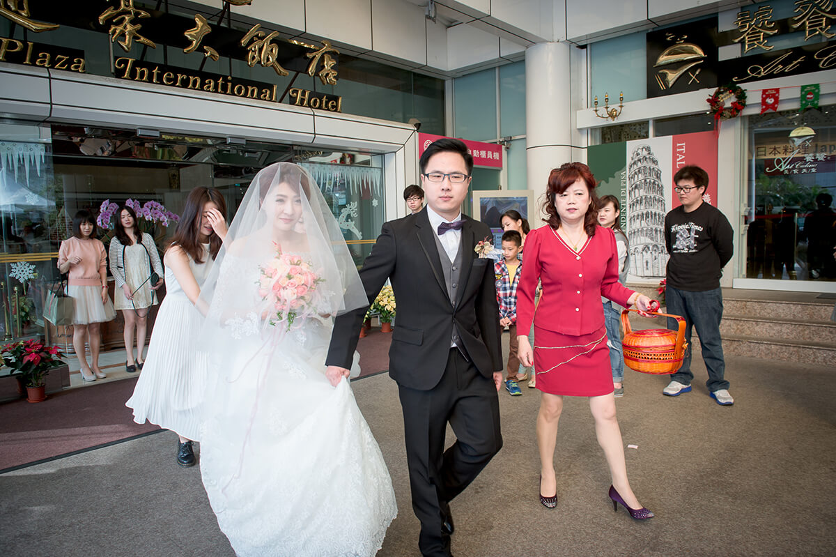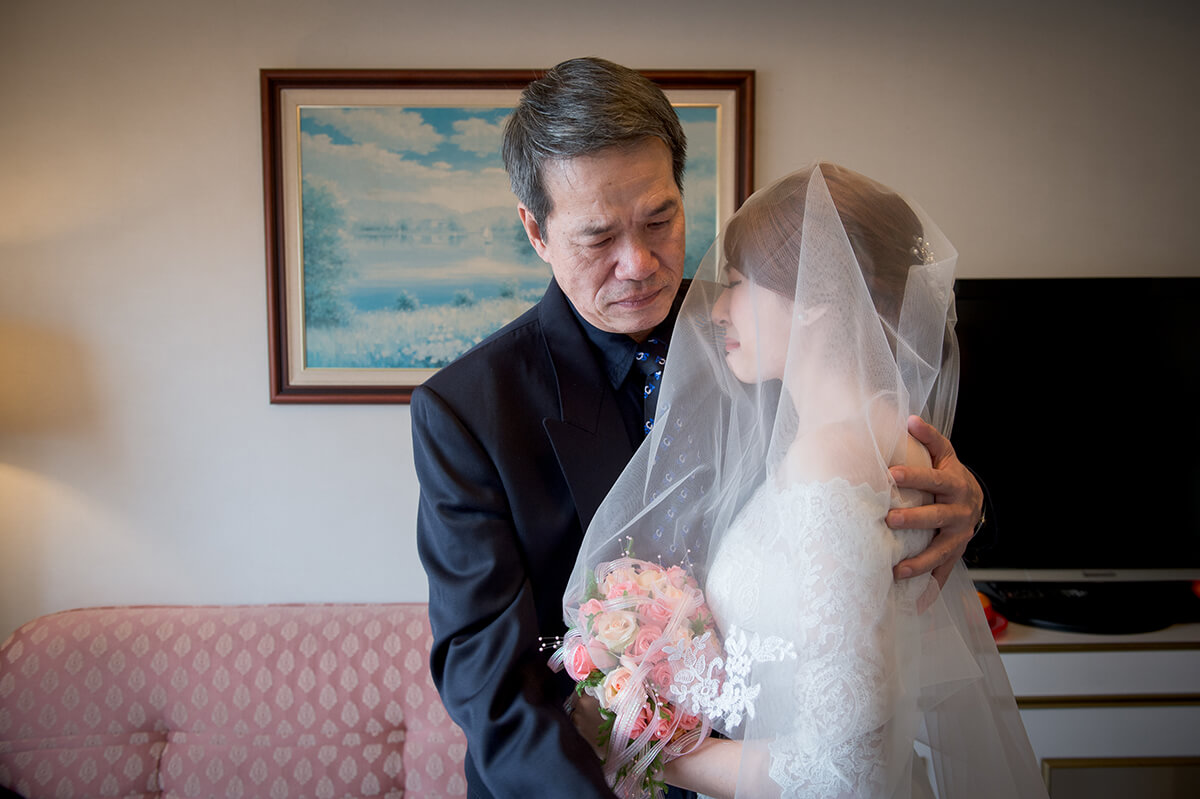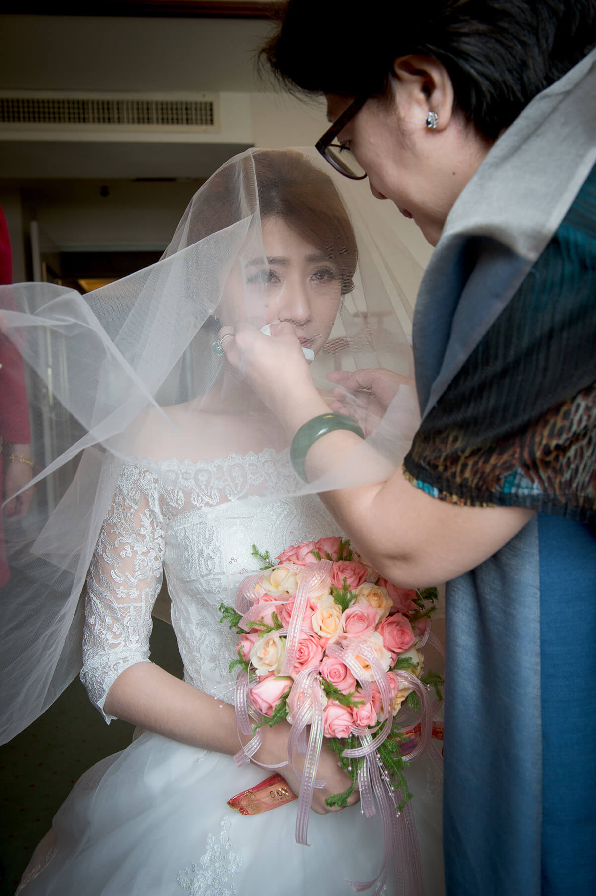阿思是我2013年新人的伴娘,一開始聯絡的時候,就用迅速的時間下訂,每每接到之前客人介紹來的客人,我們都會更謹慎處理。 這場婚禮的儀式與宴客是分兩天舉行,由於地點在台中,時間又有點早,前一晚我們就入住通豪大飯店,這間飯店在我小的時候常來用餐,隔了這麼多年似乎變了不少。由於新娘阿思是位難得的氣質美女,迎娶的過程姊妹們當然要出些題目給新郎,經歷重重難關看到新娘阿思,真的是覺得賺到了!拜別的時候,看到阿思的淚水,讓人覺得很心疼,但從兩人的互動中可以感覺到阿寬真的很疼阿思。 迎娶到男方家後,他們家的小狗也一起加入合照,在現代生活裡,養寵物真的可以讓家庭更溫暖和諧,看到他們開心地合照,攝影師我都不自覺地笑了…