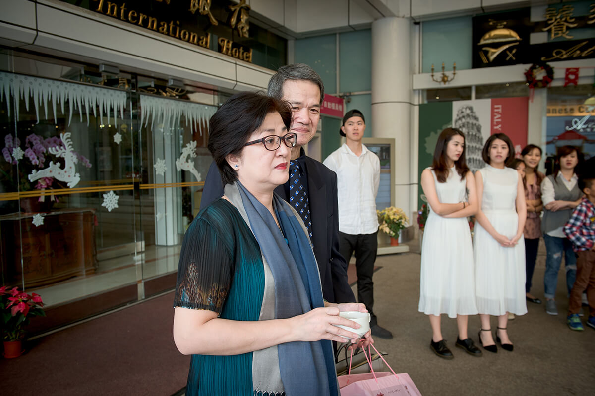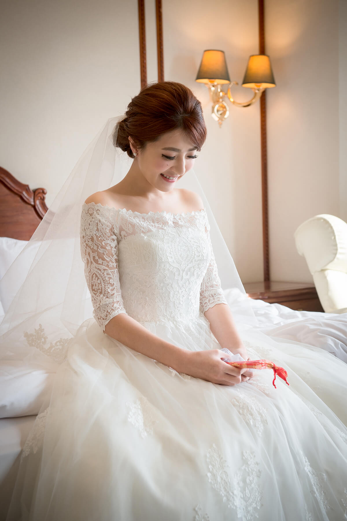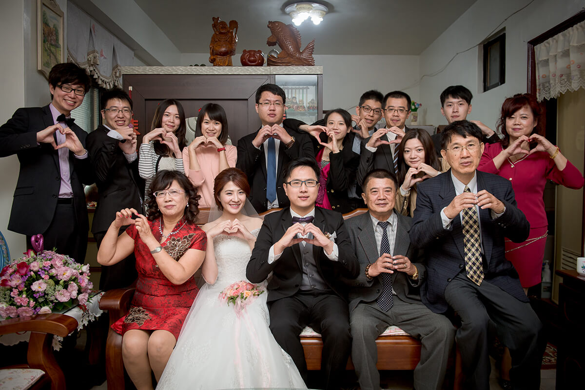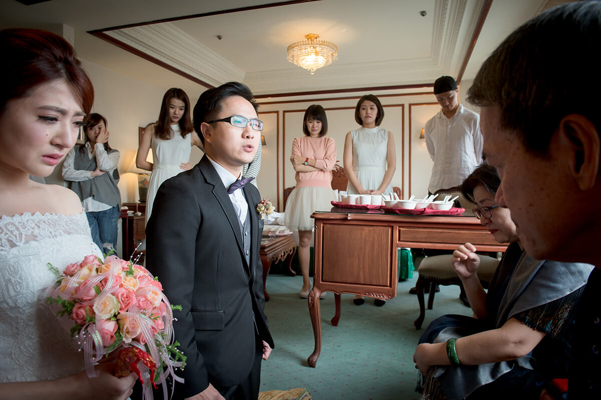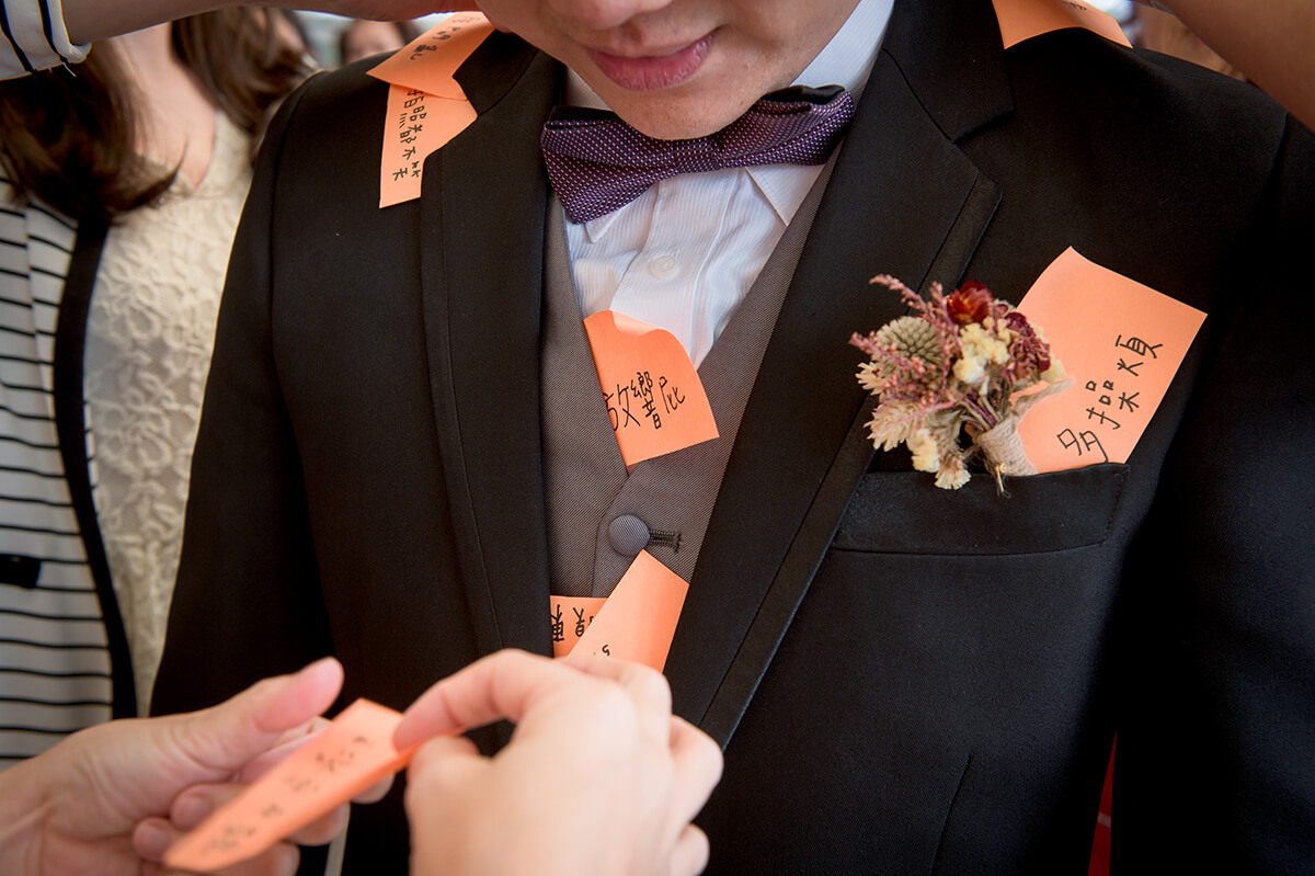 阿思是我2013年新人的伴娘,一開始聯絡的時候,就用迅速的時間下訂,每每接到之前客人介紹來的客人,我們都會更謹慎處理。 這場婚禮的儀式與宴客是分兩天舉行,由於地點在台中,時間又有點早,前一晚我們就入住通豪大飯店,這間飯店在我小的時候常來用餐,隔了這麼多年似乎變了不少。由於新娘阿思是位難得的氣質美女,迎娶的過程姊妹們當然要出些題目給新郎,經歷重重難關看到新娘阿思,真的是覺得賺到了!拜別的時候,看到阿思的淚水,讓人覺得很心疼,但從兩人的互動中可以感覺到阿寬真的很疼阿思。 迎娶到男方家後,他們家的小狗也一起加入合照,在現代生活裡,養寵物真的可以讓家庭更溫暖和諧,看到他們開心地合照,攝影師我都不自覺地笑了…
