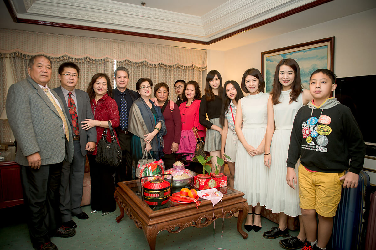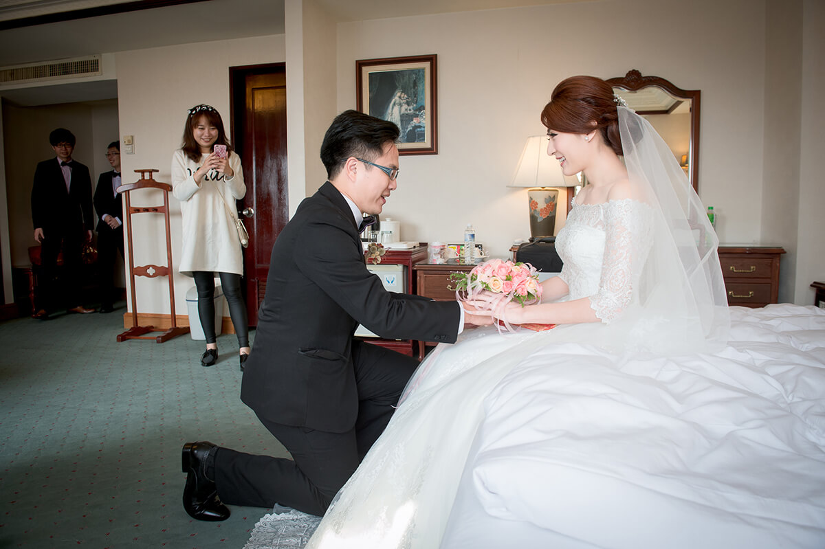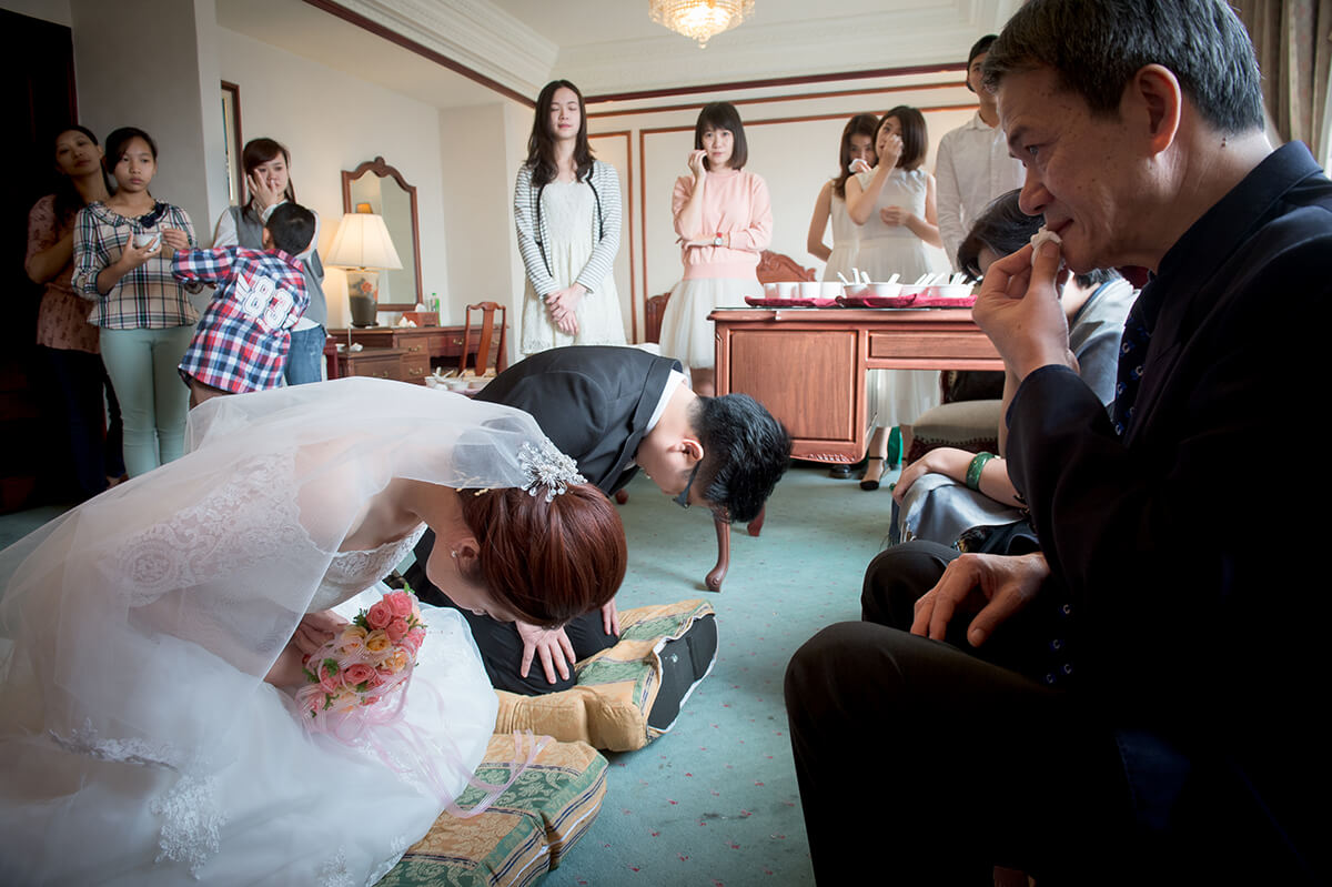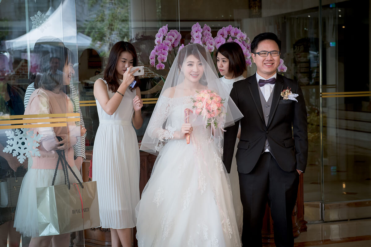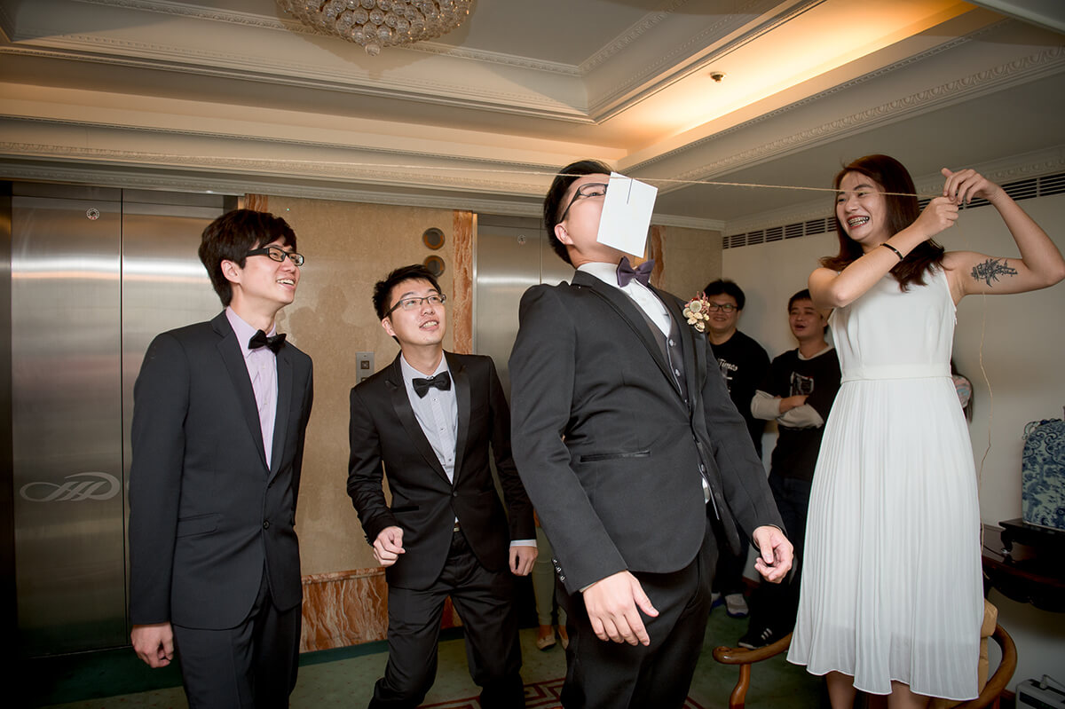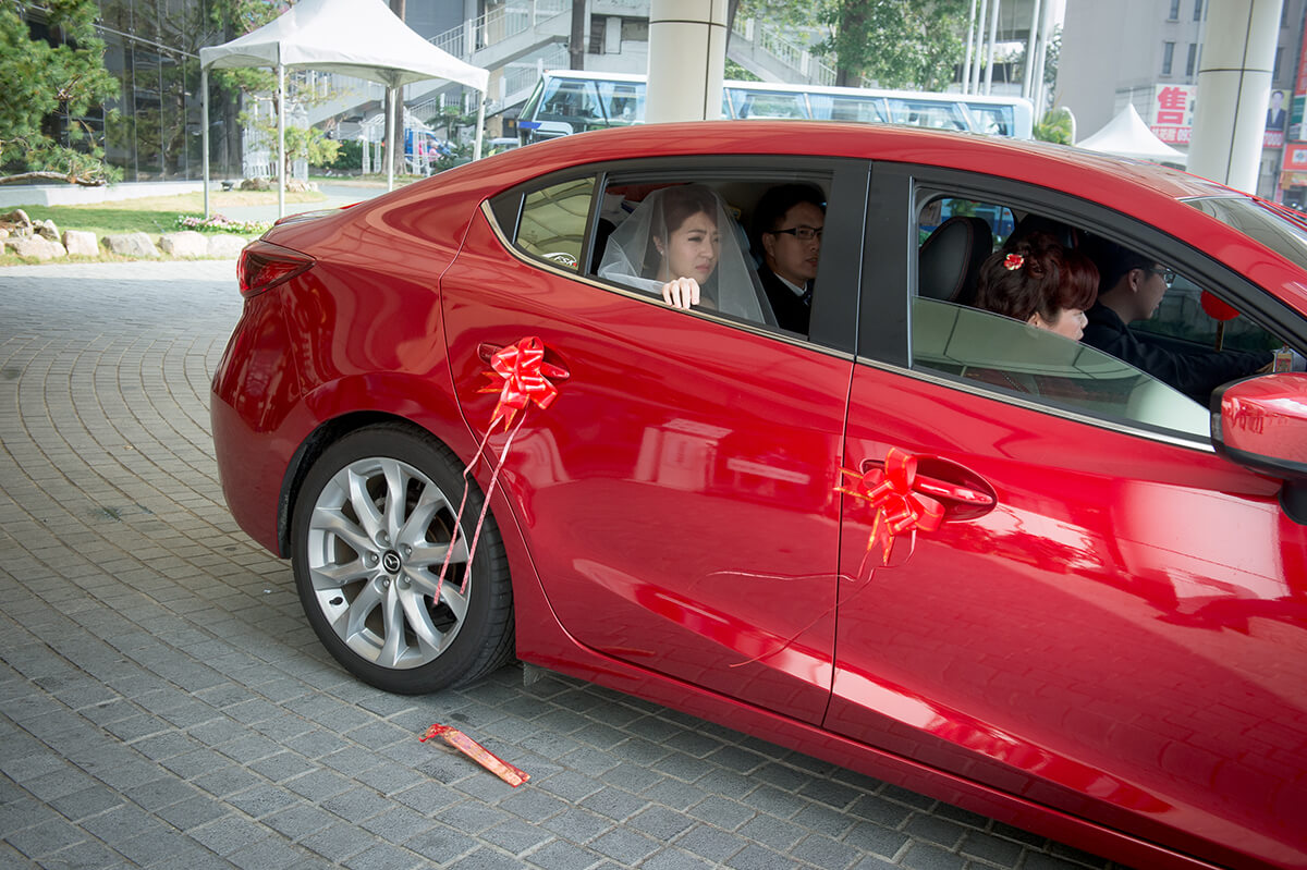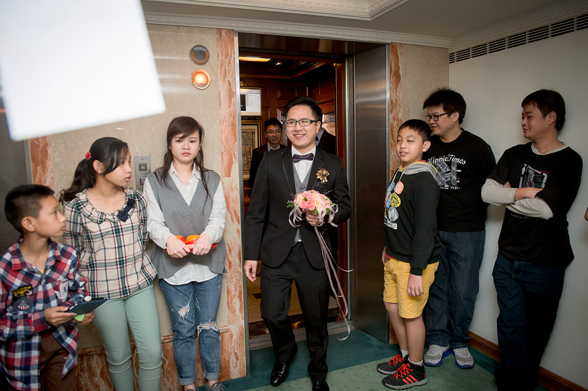 阿思是我2013年新人的伴娘,一開始聯絡的時候,就用迅速的時間下訂,每每接到之前客人介紹來的客人,我們都會更謹慎處理。 這場婚禮的儀式與宴客是分兩天舉行,由於地點在台中,時間又有點早,前一晚我們就入住通豪大飯店,這間飯店在我小的時候常來用餐,隔了這麼多年似乎變了不少。由於新娘阿思是位難得的氣質美女,迎娶的過程姊妹們當然要出些題目給新郎,經歷重重難關看到新娘阿思,真的是覺得賺到了!拜別的時候,看到阿思的淚水,讓人覺得很心疼,但從兩人的互動中可以感覺到阿寬真的很疼阿思。 迎娶到男方家後,他們家的小狗也一起加入合照,在現代生活裡,養寵物真的可以讓家庭更溫暖和諧,看到他們開心地合照,攝影師我都不自覺地笑了…