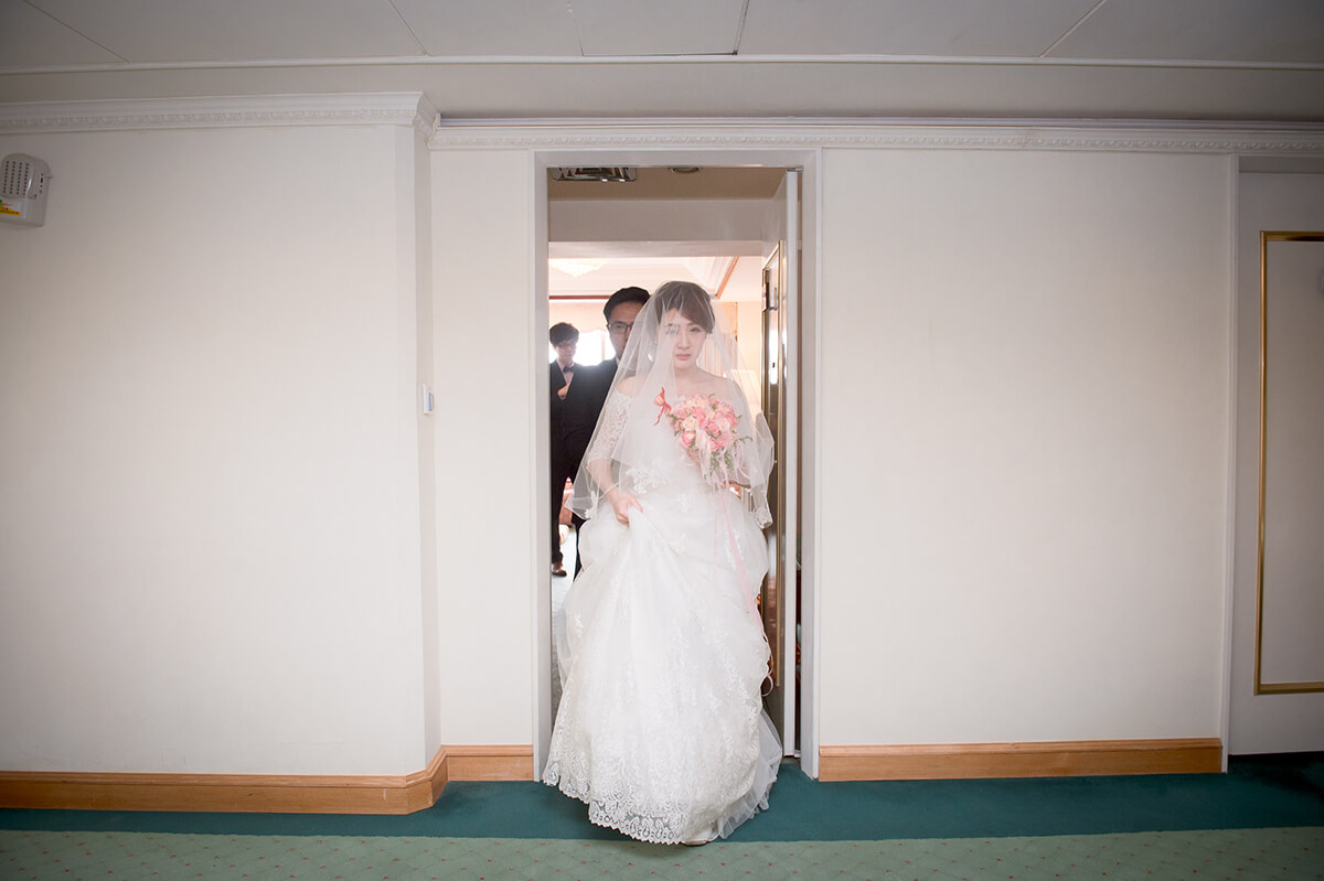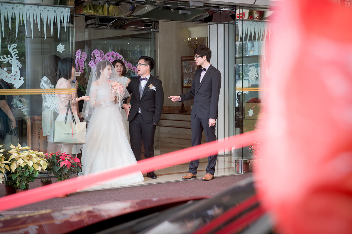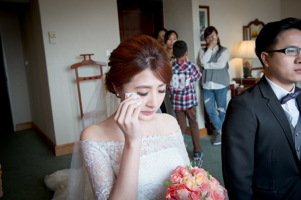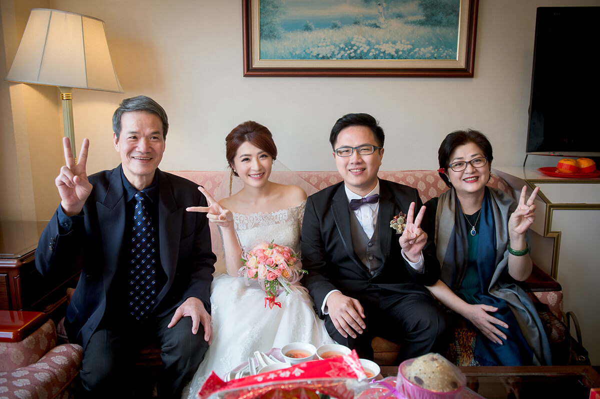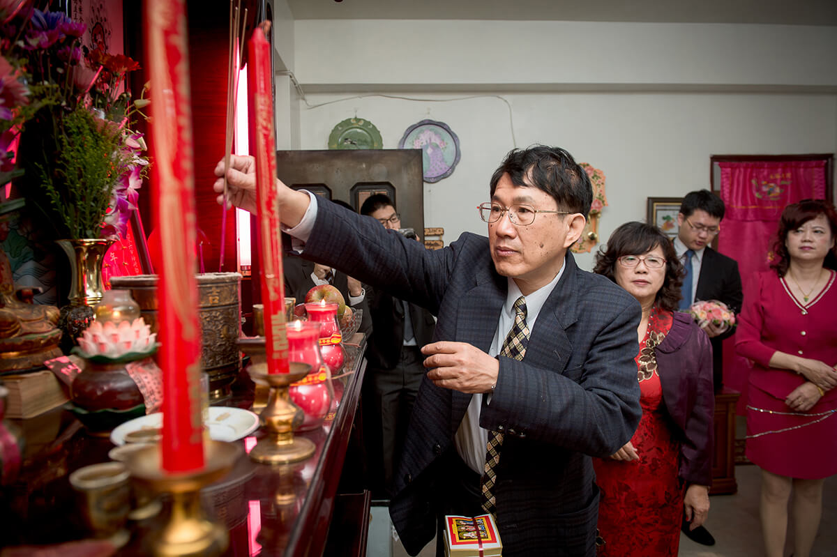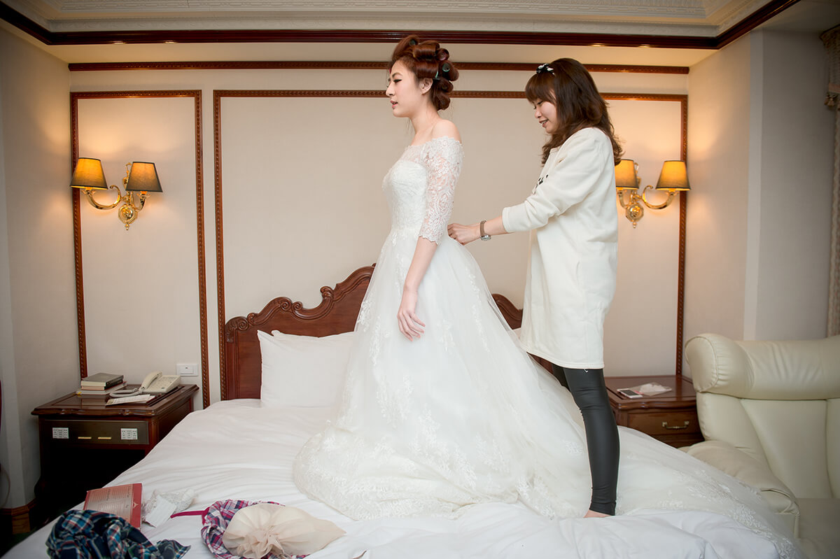 阿思是我2013年新人的伴娘,一開始聯絡的時候,就用迅速的時間下訂,每每接到之前客人介紹來的客人,我們都會更謹慎處理。 這場婚禮的儀式與宴客是分兩天舉行,由於地點在台中,時間又有點早,前一晚我們就入住通豪大飯店,這間飯店在我小的時候常來用餐,隔了這麼多年似乎變了不少。由於新娘阿思是位難得的氣質美女,迎娶的過程姊妹們當然要出些題目給新郎,經歷重重難關看到新娘阿思,真的是覺得賺到了!拜別的時候,看到阿思的淚水,讓人覺得很心疼,但從兩人的互動中可以感覺到阿寬真的很疼阿思。 迎娶到男方家後,他們家的小狗也一起加入合照,在現代生活裡,養寵物真的可以讓家庭更溫暖和諧,看到他們開心地合照,攝影師我都不自覺地笑了…