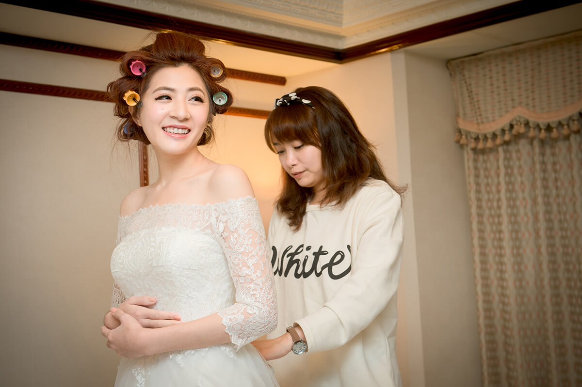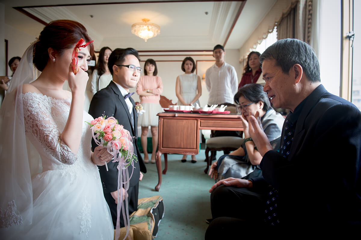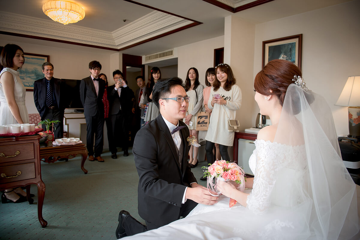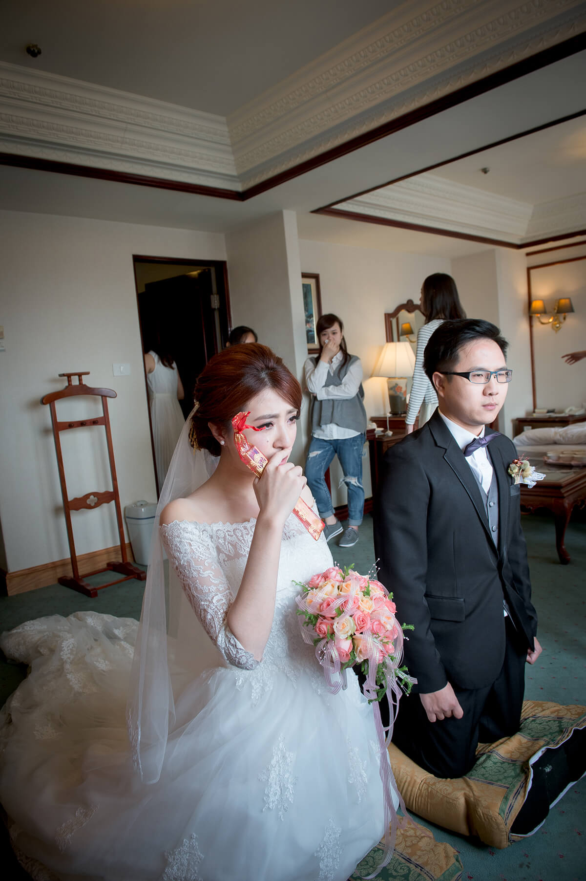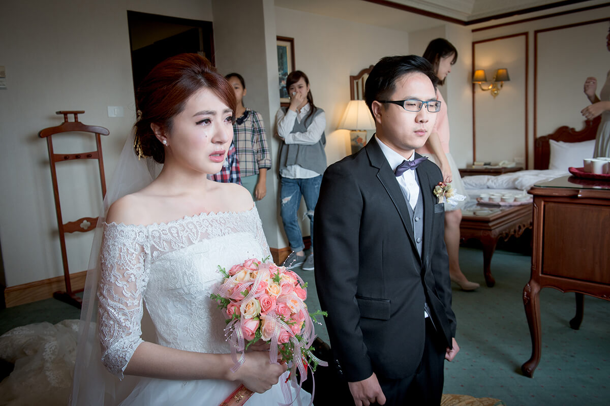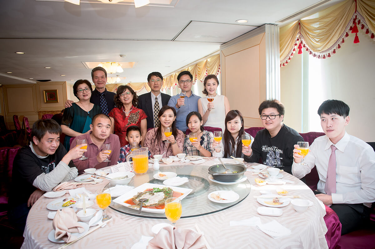 阿思是我2013年新人的伴娘,一開始聯絡的時候,就用迅速的時間下訂,每每接到之前客人介紹來的客人,我們都會更謹慎處理。 這場婚禮的儀式與宴客是分兩天舉行,由於地點在台中,時間又有點早,前一晚我們就入住通豪大飯店,這間飯店在我小的時候常來用餐,隔了這麼多年似乎變了不少。由於新娘阿思是位難得的氣質美女,迎娶的過程姊妹們當然要出些題目給新郎,經歷重重難關看到新娘阿思,真的是覺得賺到了!拜別的時候,看到阿思的淚水,讓人覺得很心疼,但從兩人的互動中可以感覺到阿寬真的很疼阿思。 迎娶到男方家後,他們家的小狗也一起加入合照,在現代生活裡,養寵物真的可以讓家庭更溫暖和諧,看到他們開心地合照,攝影師我都不自覺地笑了…