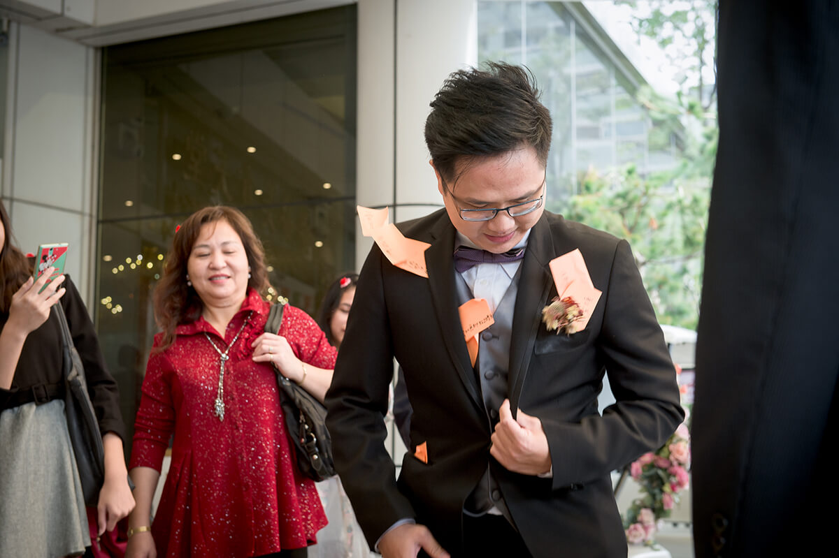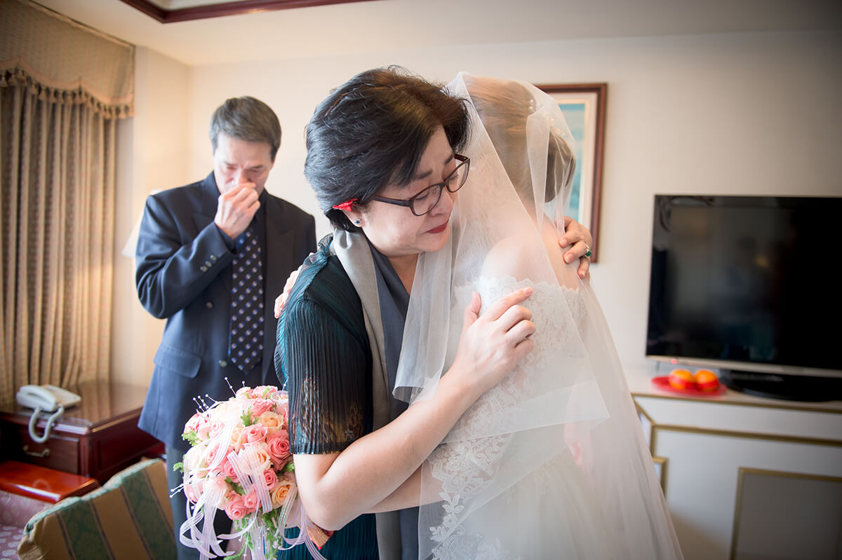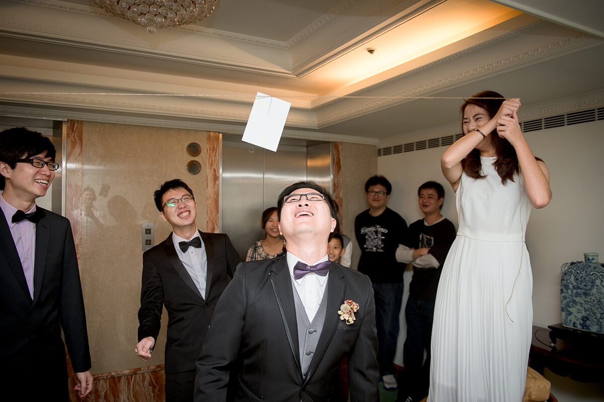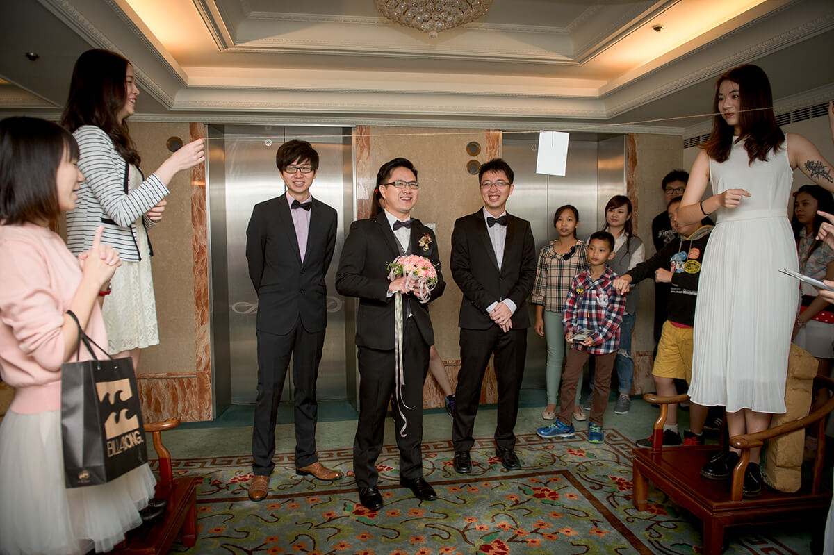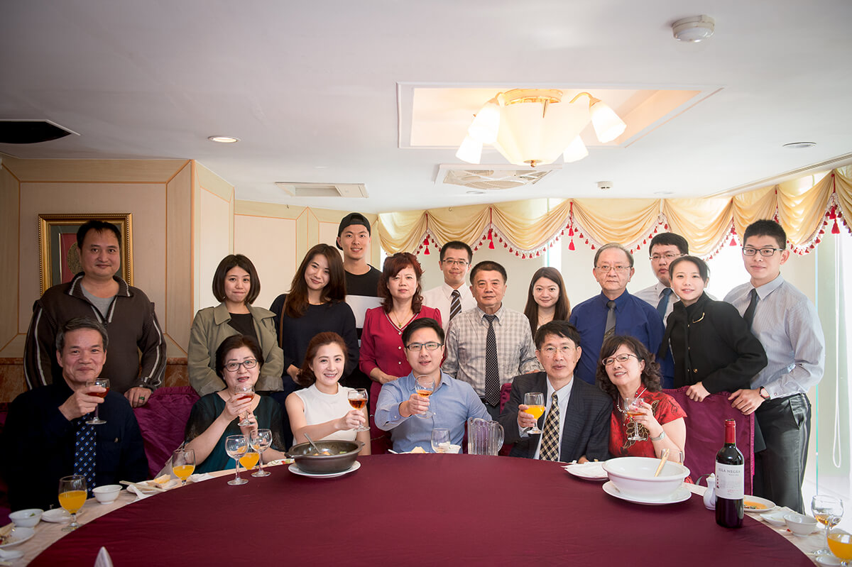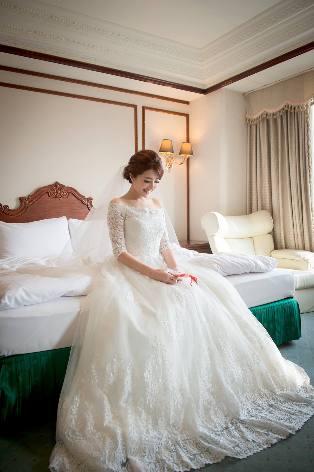 阿思是我2013年新人的伴娘,一開始聯絡的時候,就用迅速的時間下訂,每每接到之前客人介紹來的客人,我們都會更謹慎處理。 這場婚禮的儀式與宴客是分兩天舉行,由於地點在台中,時間又有點早,前一晚我們就入住通豪大飯店,這間飯店在我小的時候常來用餐,隔了這麼多年似乎變了不少。由於新娘阿思是位難得的氣質美女,迎娶的過程姊妹們當然要出些題目給新郎,經歷重重難關看到新娘阿思,真的是覺得賺到了!拜別的時候,看到阿思的淚水,讓人覺得很心疼,但從兩人的互動中可以感覺到阿寬真的很疼阿思。 迎娶到男方家後,他們家的小狗也一起加入合照,在現代生活裡,養寵物真的可以讓家庭更溫暖和諧,看到他們開心地合照,攝影師我都不自覺地笑了…