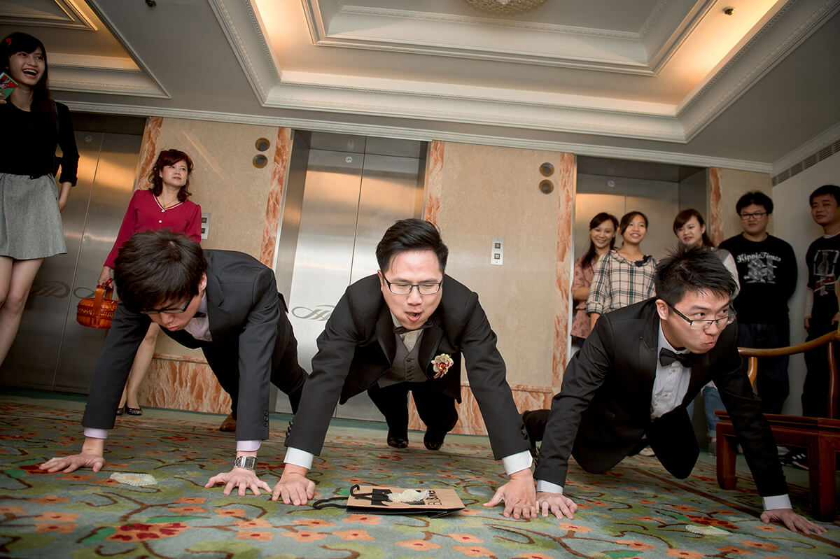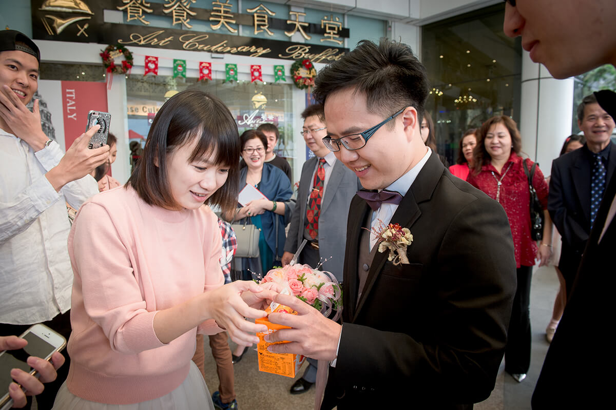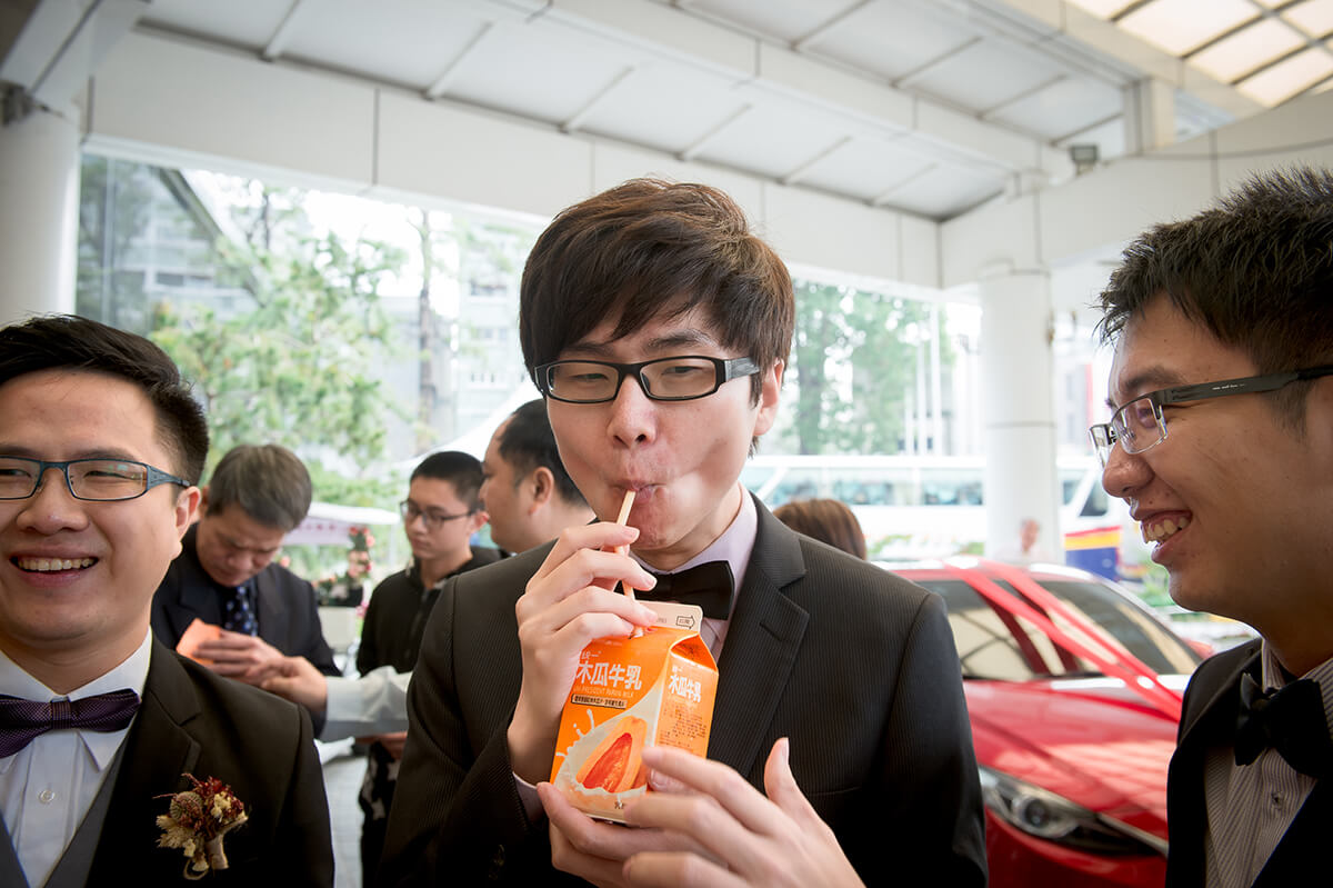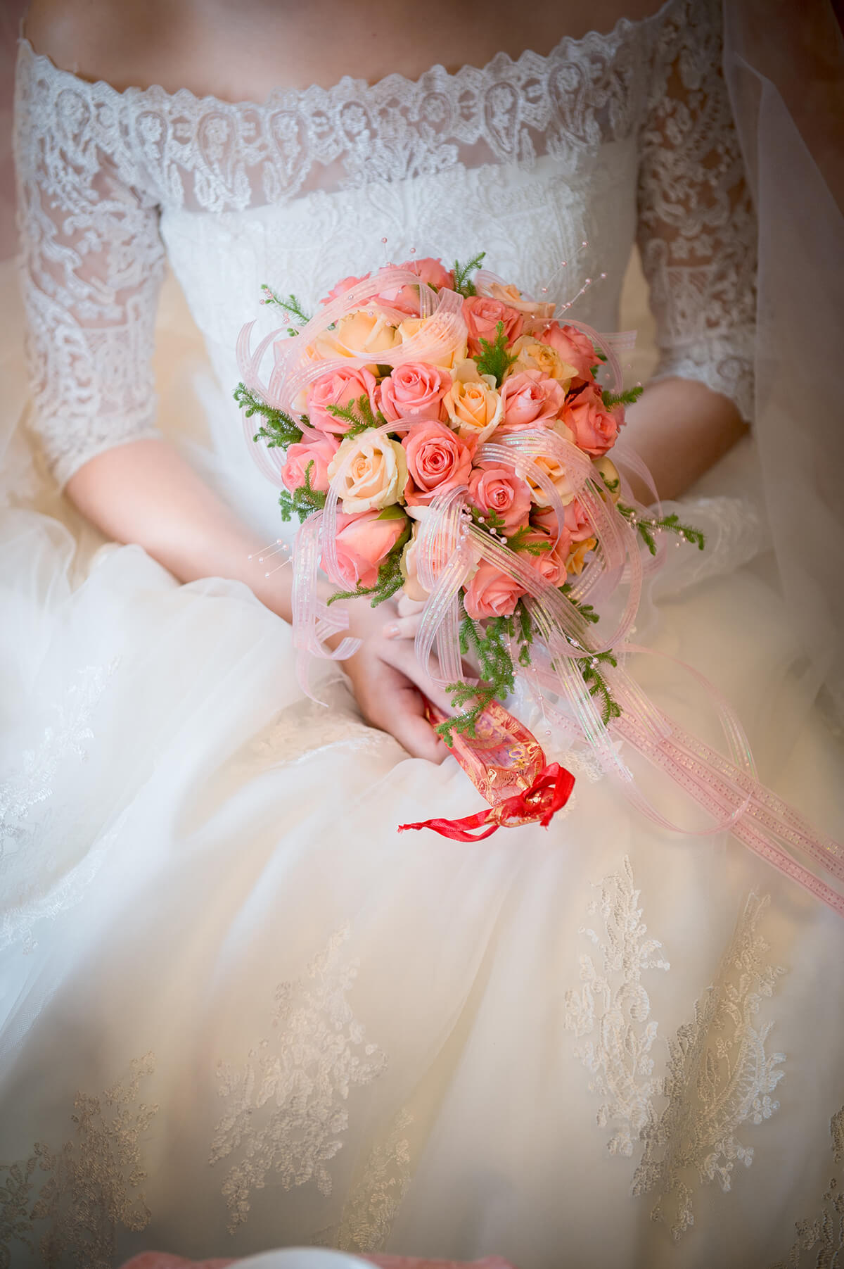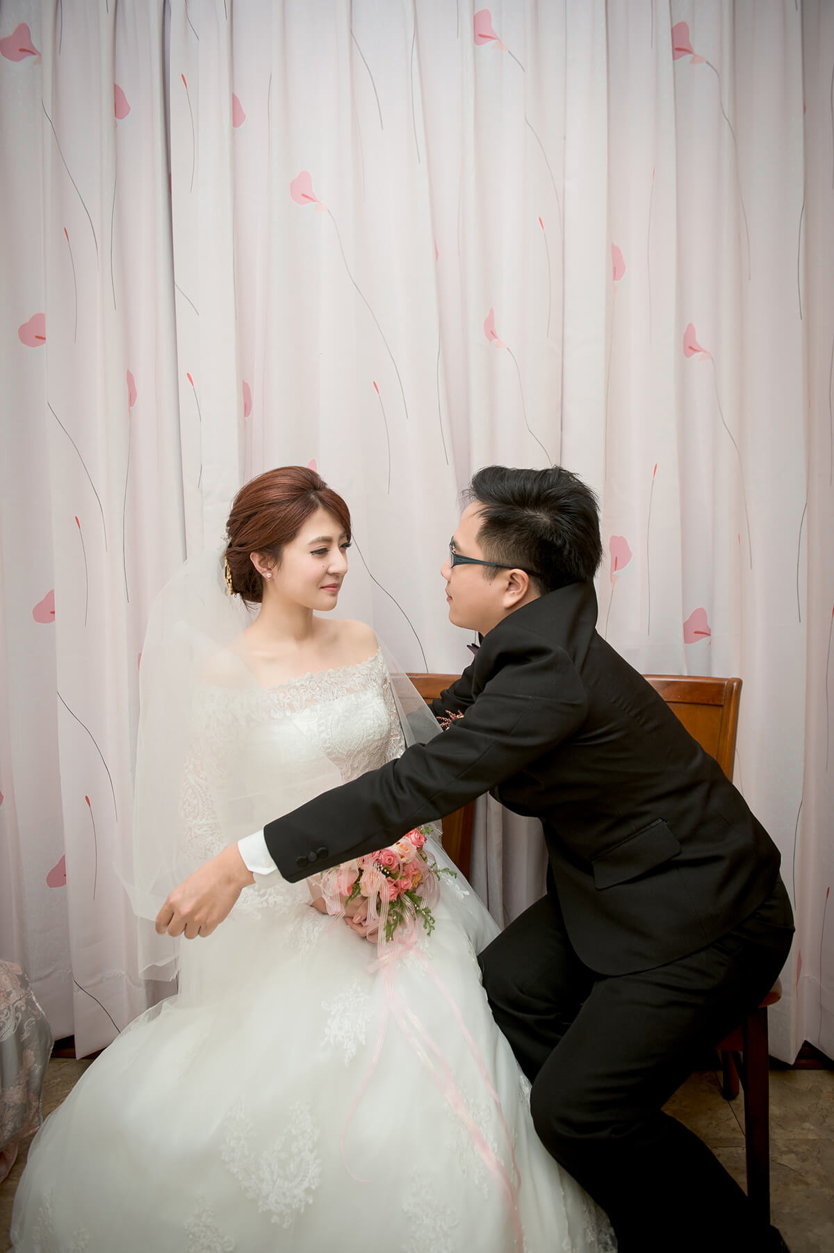 阿思是我2013年新人的伴娘,一開始聯絡的時候,就用迅速的時間下訂,每每接到之前客人介紹來的客人,我們都會更謹慎處理。 這場婚禮的儀式與宴客是分兩天舉行,由於地點在台中,時間又有點早,前一晚我們就入住通豪大飯店,這間飯店在我小的時候常來用餐,隔了這麼多年似乎變了不少。由於新娘阿思是位難得的氣質美女,迎娶的過程姊妹們當然要出些題目給新郎,經歷重重難關看到新娘阿思,真的是覺得賺到了!拜別的時候,看到阿思的淚水,讓人覺得很心疼,但從兩人的互動中可以感覺到阿寬真的很疼阿思。 迎娶到男方家後,他們家的小狗也一起加入合照,在現代生活裡,養寵物真的可以讓家庭更溫暖和諧,看到他們開心地合照,攝影師我都不自覺地笑了…
