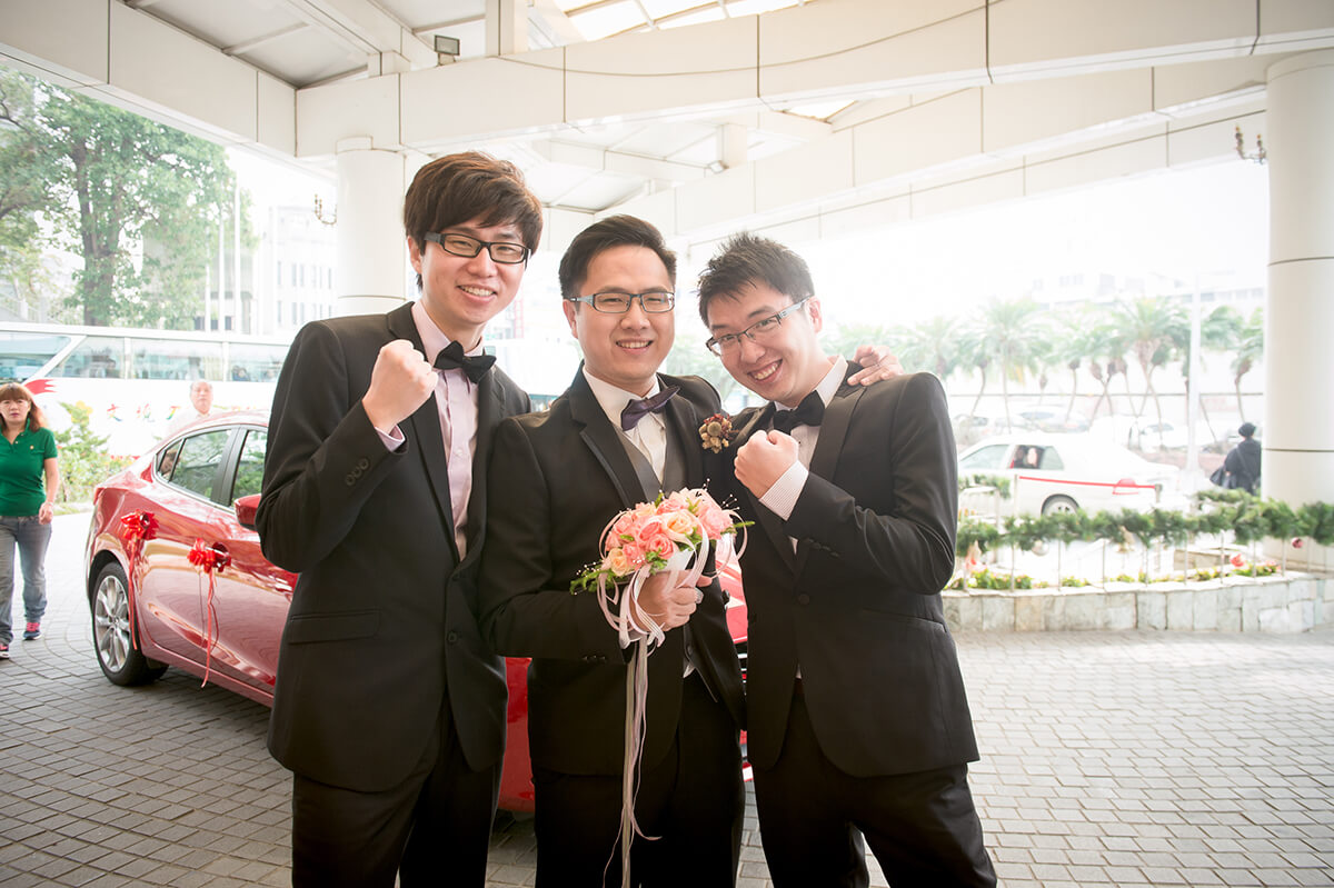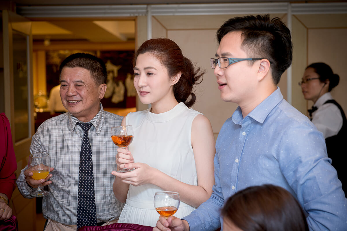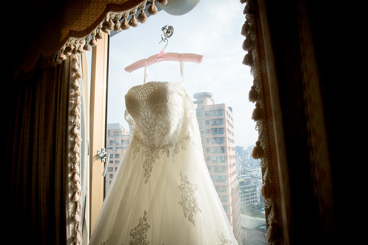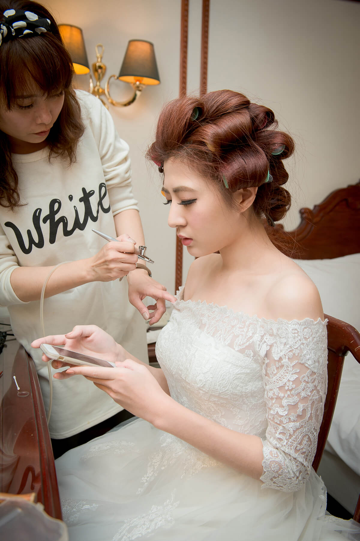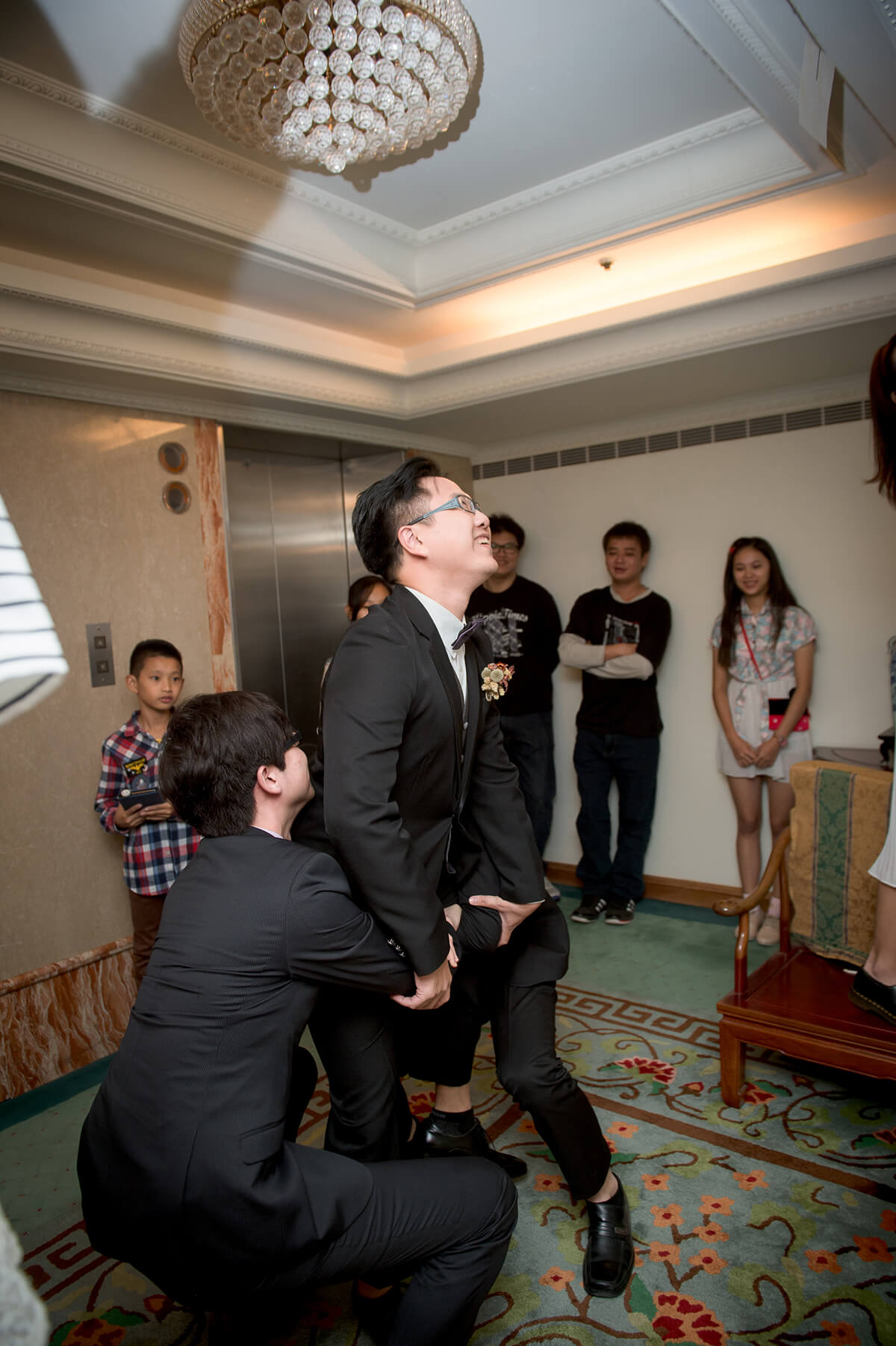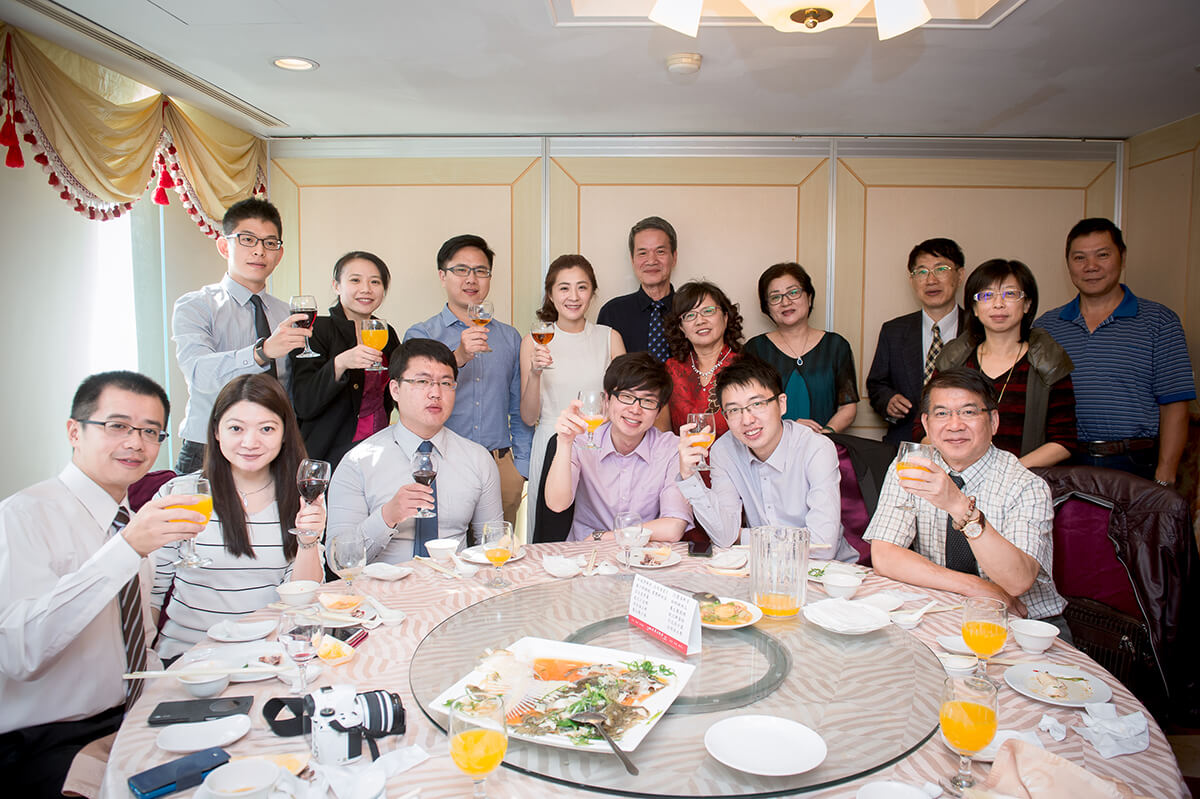 阿思是我2013年新人的伴娘,一開始聯絡的時候,就用迅速的時間下訂,每每接到之前客人介紹來的客人,我們都會更謹慎處理。 這場婚禮的儀式與宴客是分兩天舉行,由於地點在台中,時間又有點早,前一晚我們就入住通豪大飯店,這間飯店在我小的時候常來用餐,隔了這麼多年似乎變了不少。由於新娘阿思是位難得的氣質美女,迎娶的過程姊妹們當然要出些題目給新郎,經歷重重難關看到新娘阿思,真的是覺得賺到了!拜別的時候,看到阿思的淚水,讓人覺得很心疼,但從兩人的互動中可以感覺到阿寬真的很疼阿思。 迎娶到男方家後,他們家的小狗也一起加入合照,在現代生活裡,養寵物真的可以讓家庭更溫暖和諧,看到他們開心地合照,攝影師我都不自覺地笑了…