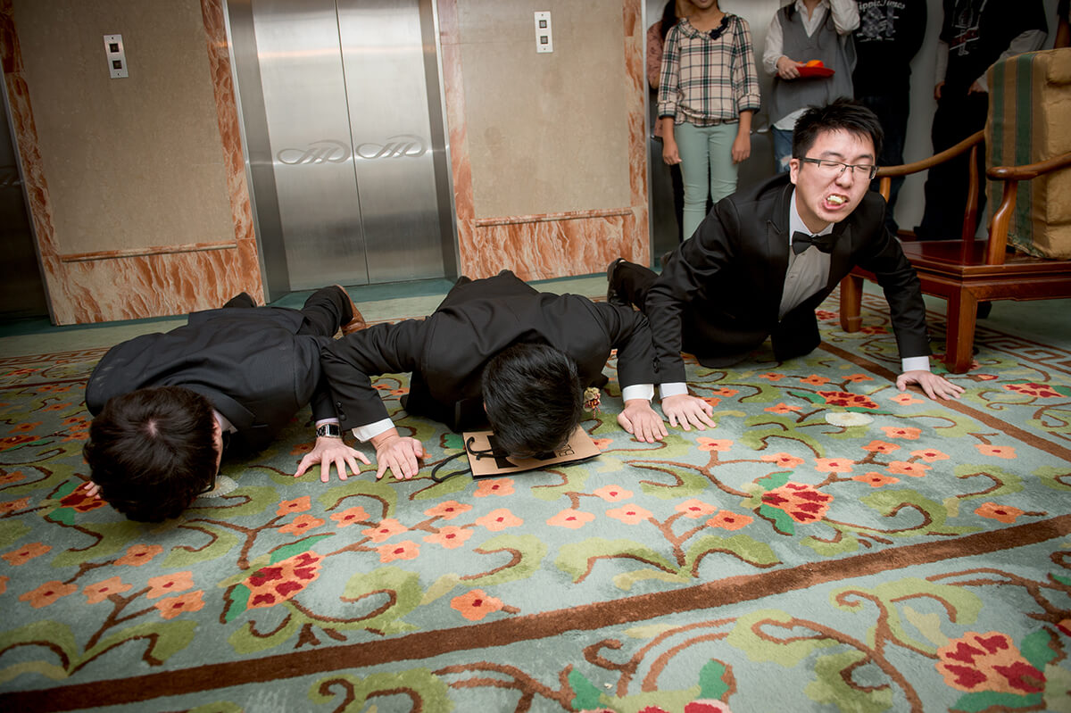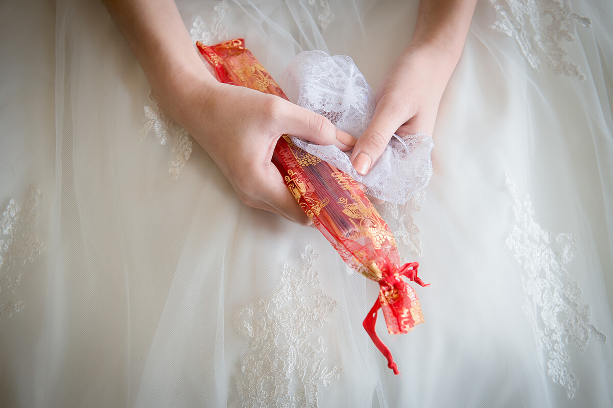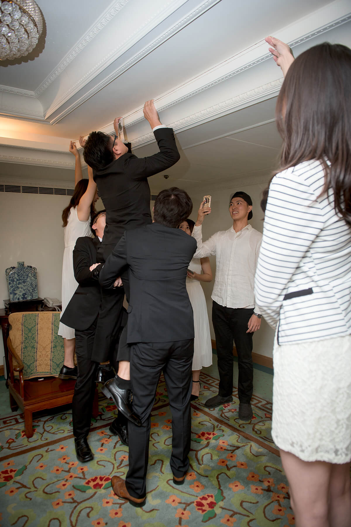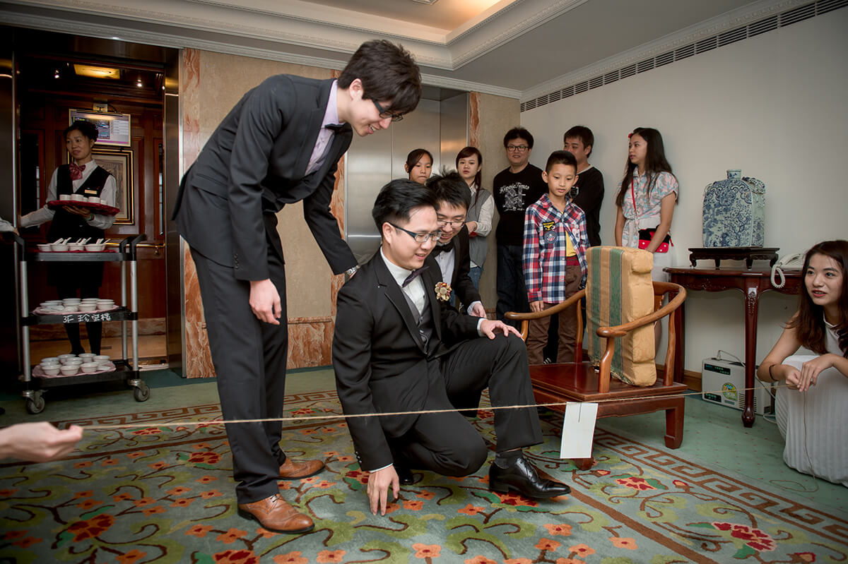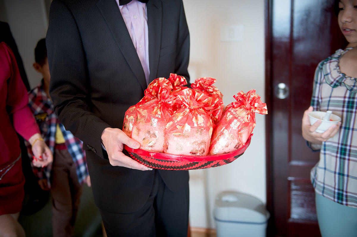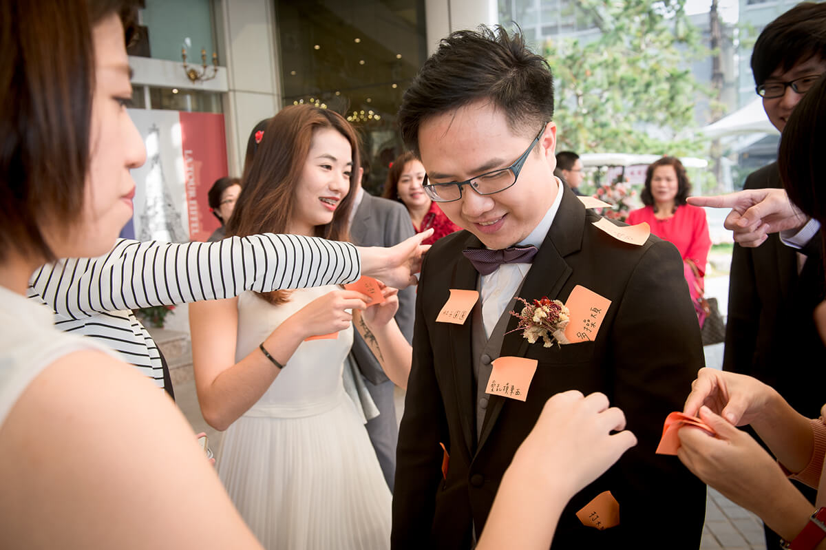 阿思是我2013年新人的伴娘,一開始聯絡的時候,就用迅速的時間下訂,每每接到之前客人介紹來的客人,我們都會更謹慎處理。 這場婚禮的儀式與宴客是分兩天舉行,由於地點在台中,時間又有點早,前一晚我們就入住通豪大飯店,這間飯店在我小的時候常來用餐,隔了這麼多年似乎變了不少。由於新娘阿思是位難得的氣質美女,迎娶的過程姊妹們當然要出些題目給新郎,經歷重重難關看到新娘阿思,真的是覺得賺到了!拜別的時候,看到阿思的淚水,讓人覺得很心疼,但從兩人的互動中可以感覺到阿寬真的很疼阿思。 迎娶到男方家後,他們家的小狗也一起加入合照,在現代生活裡,養寵物真的可以讓家庭更溫暖和諧,看到他們開心地合照,攝影師我都不自覺地笑了…