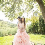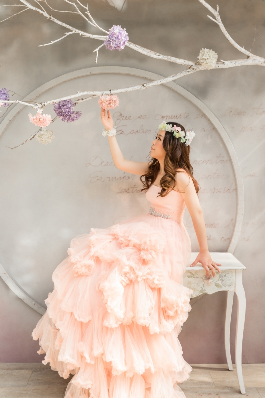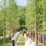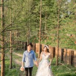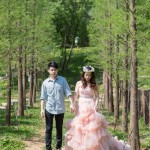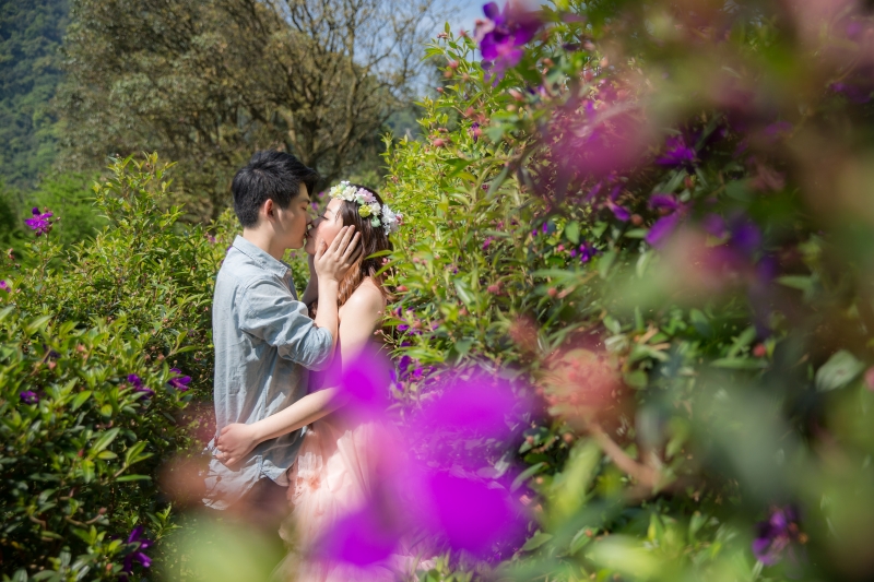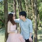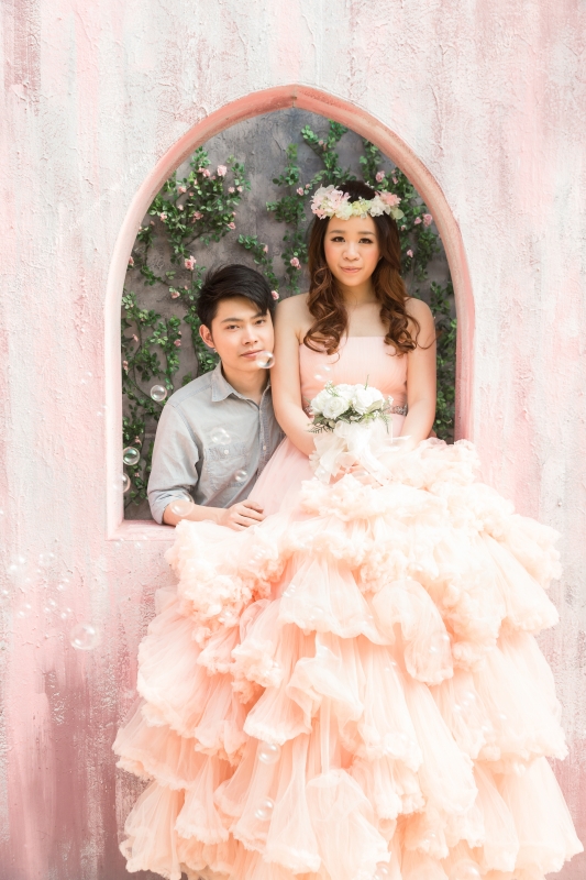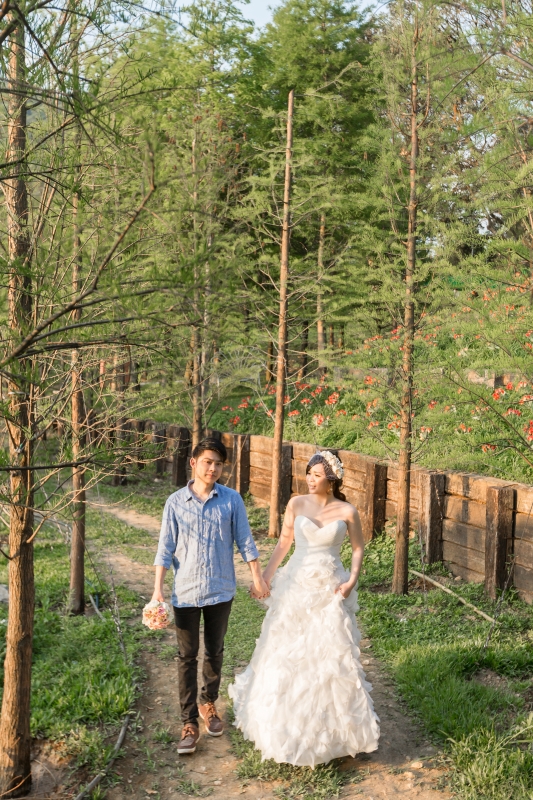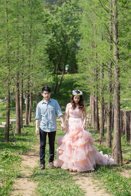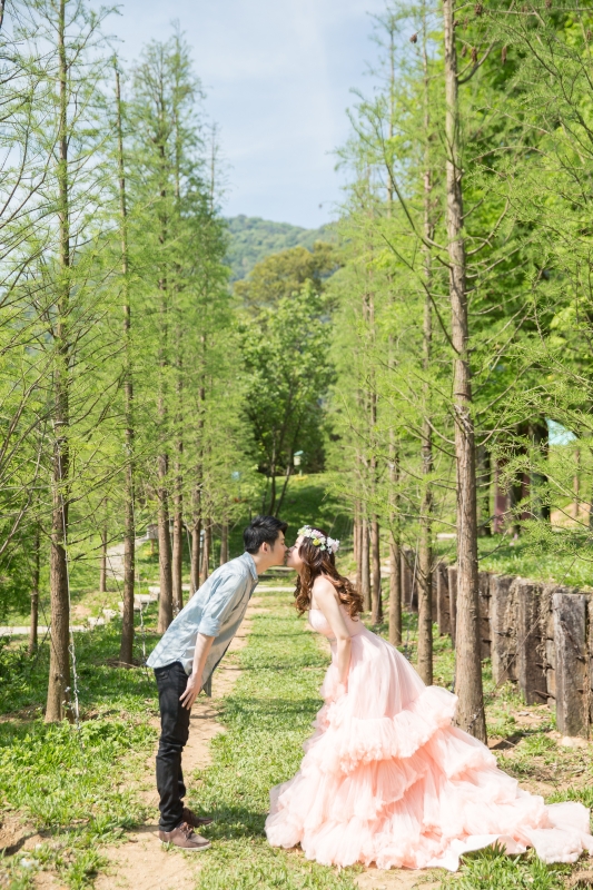 粉紅色禮服是君儀的喜愛的婚紗,整套新郎走輕鬆隨性路線,在林間拍攝…