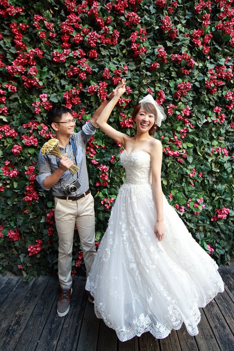記得拍攝那天一早我們從東區開始,從指定的花牆開始拍攝,在這裡就拍到許多可愛自然的表情!
