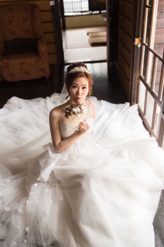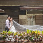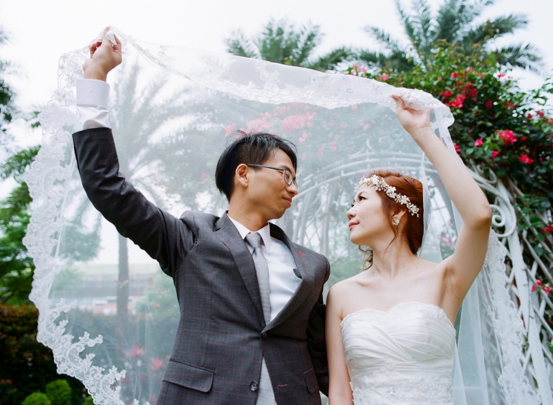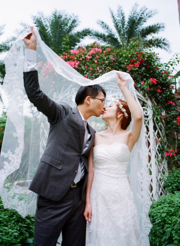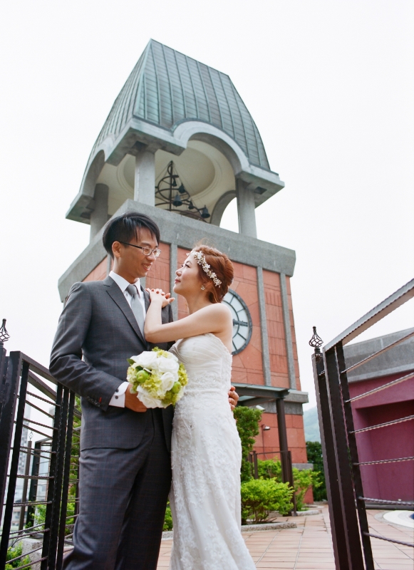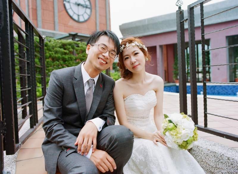 準新娘自己偏好維多利亞建築的風格,因此,不但婚宴辦在這邊,婚紗也選擇在這裡拍攝。上面的照片是用中片幅底片機拍攝,以底片的色調呈現不同的氛圍。
