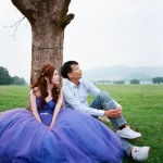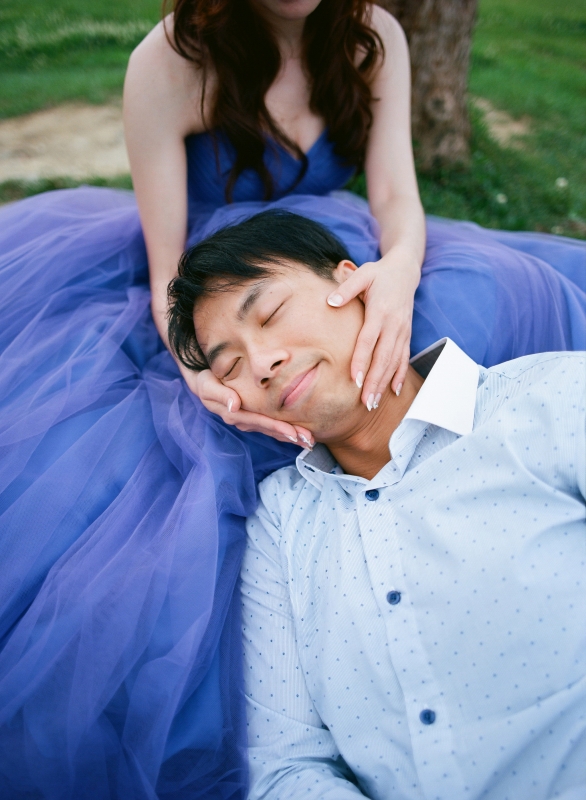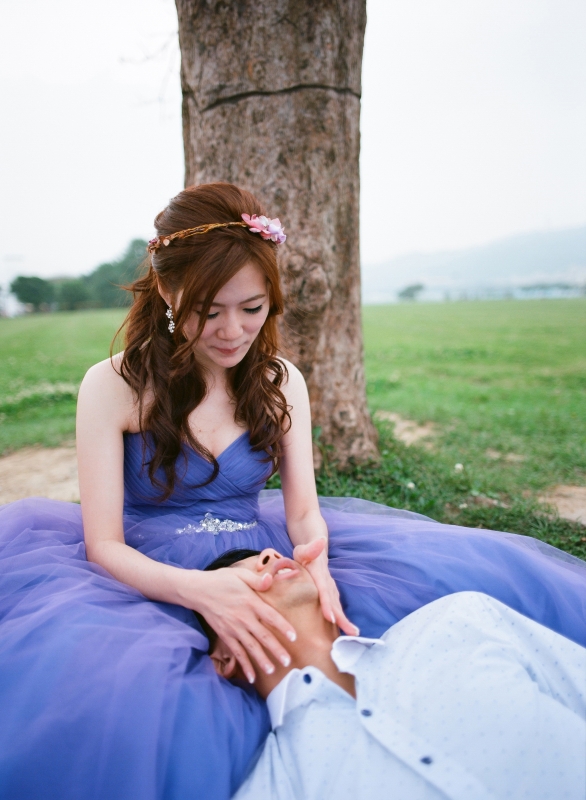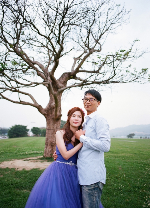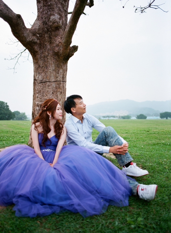 最後一套紫色晚禮服準新人選擇在大佳河濱公園拍攝,上面放的照片也是使用中片幅底片機拍攝,我個人覺得底片的色調相當棒!