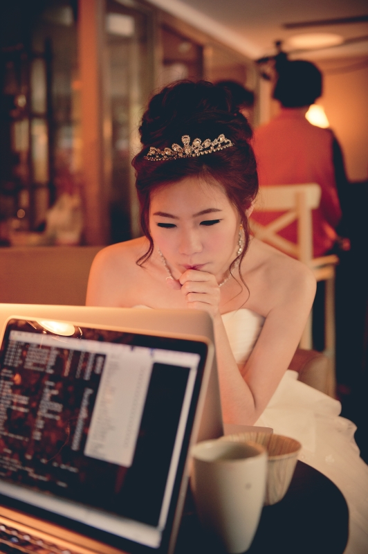 不過工程師的生活當然不可能都這麼愜意,一有機會還是要打開電腦上上網,即使拍婚紗那天,還是不能忘了「魔獸世界」。