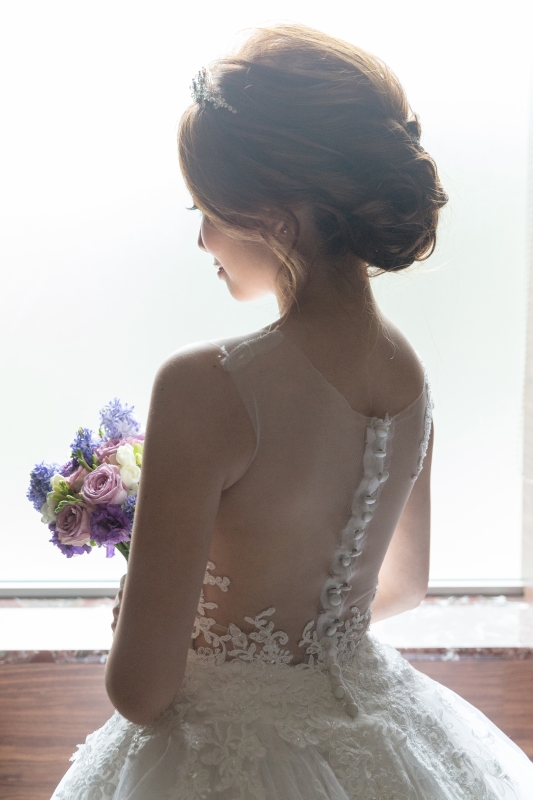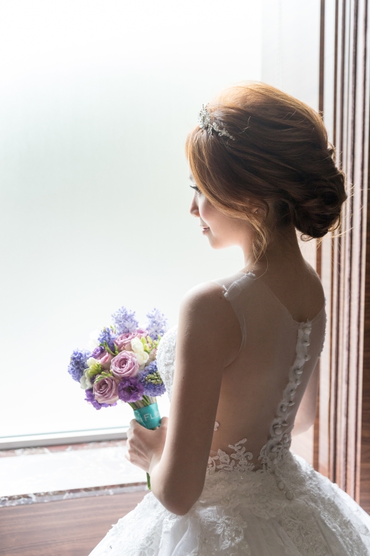 新娘為了文定訂做了一件合身的旗袍,這個顏色是新娘最喜歡的紫色,非常適合新娘。而當天的小花童配合了新娘一致穿上旗袍,小朋友們玩得很開心,也陪著新娘一起擺pose,拍過這麼多場婚禮,穿白紗的花童常有,穿旗袍的花童我第一次看到!