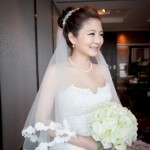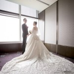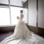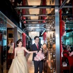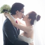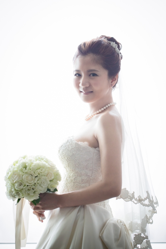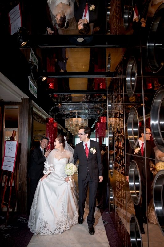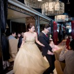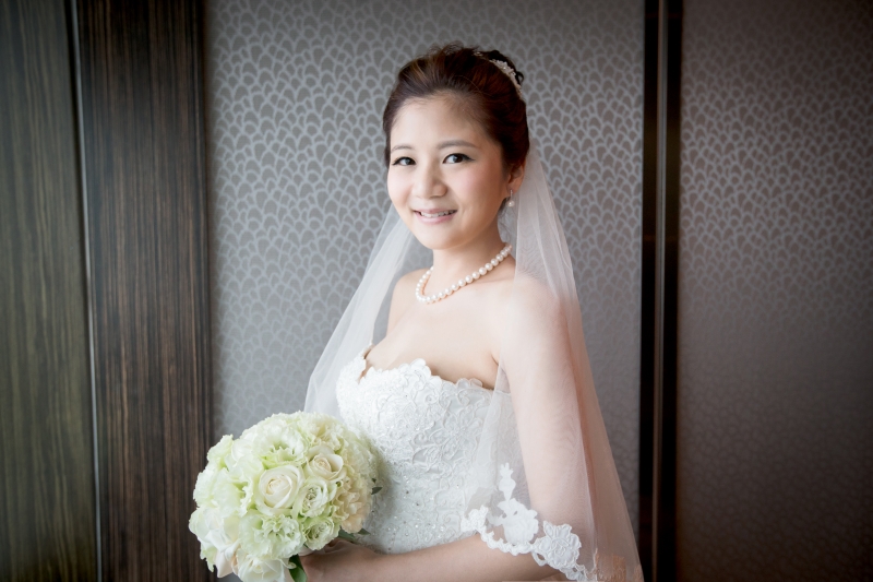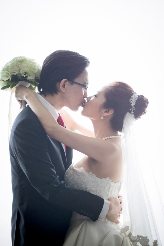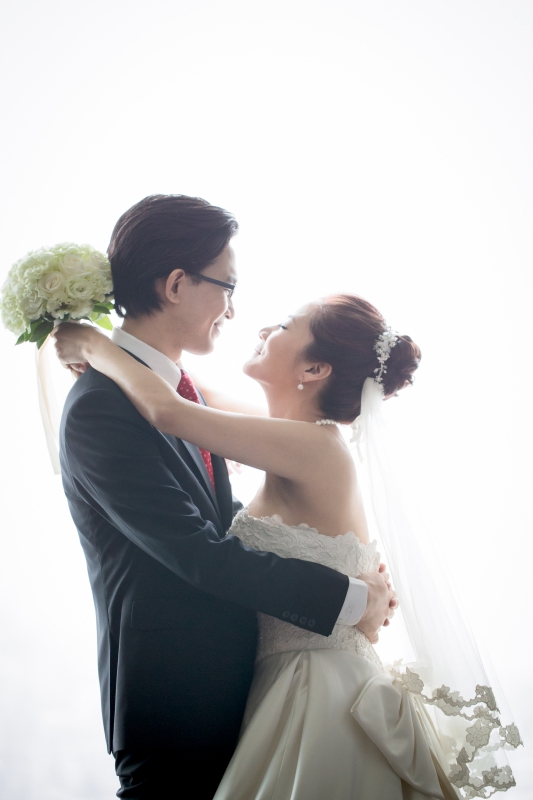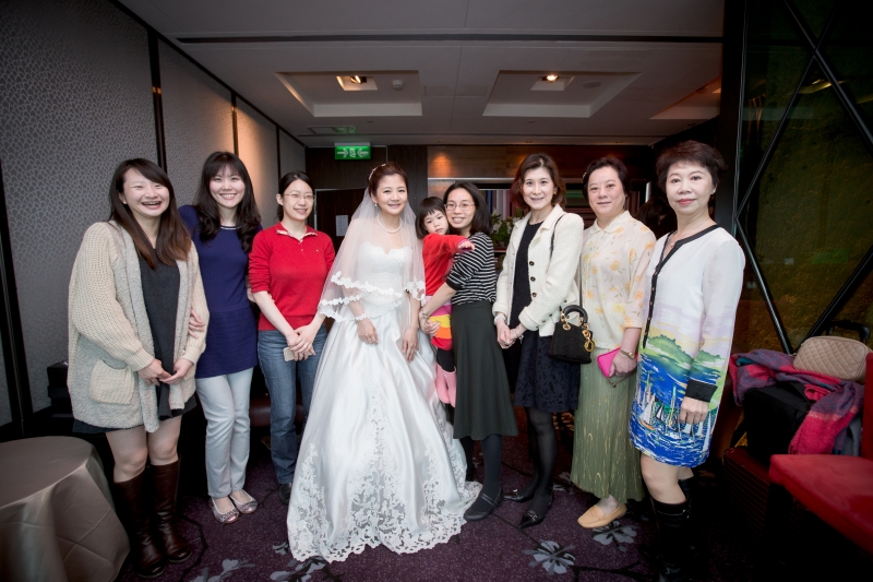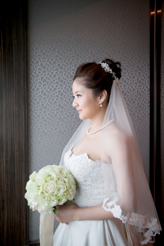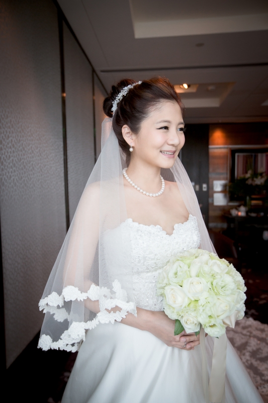 那天我們抵達會場的時候,新娘還在化妝,趁著白紗還沒穿上,時間又還充裕的情況下,我們在會場到處找適合拍攝白紗的地點,最後,我們決定在宴會廳的舞臺中間,由於我自己蠻喜歡這張白紗的照片,便先把它po在Facenook上面,沒想到新娘Alice看到那張照片的時候說:「天哪好美⋯話說好像和我同個場地耶,我那時候居然沒有拍,嗚嗚…。」<– 這件就是妳的白紗呀!