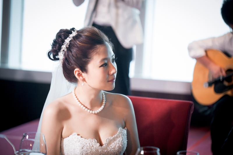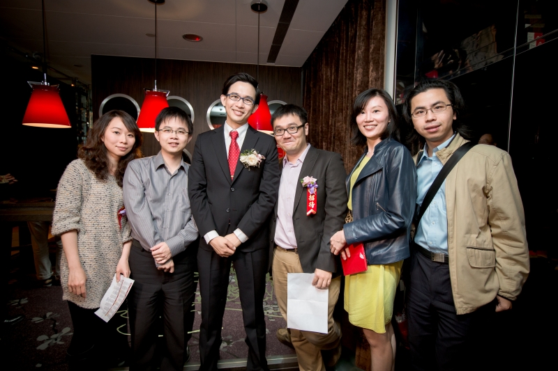 對於台北欣葉101這個場地,我個人覺得是挑戰婚攝對於混合色溫處理的能力,場地雖然不大,但擺飾複雜,會影響到攝影師佈燈,感謝那天助理Sam的協助,因為你讓整場拍攝更為順利,也謝謝A-mei老師,每次看到造型師是妳我都超放心的!話說新娘還是2011年新娘的同學,陽明牙醫的美女也未免太多了… 我下輩子一定要努力唸醫學院。