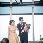 二進的時候,新人特別抱著兩人的小寶貝一同進場,中間還不斷讓親友看小Baby,場面很溫馨…