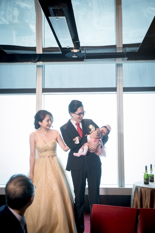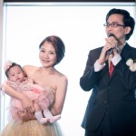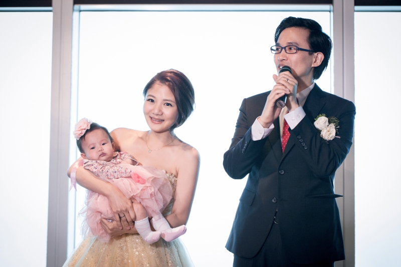 這場婚禮紀錄是在2014年九月預定,結合寶寶的百日宴一起舉辦,來賓致詞的時候說: