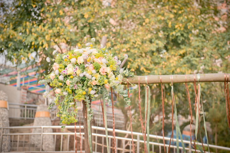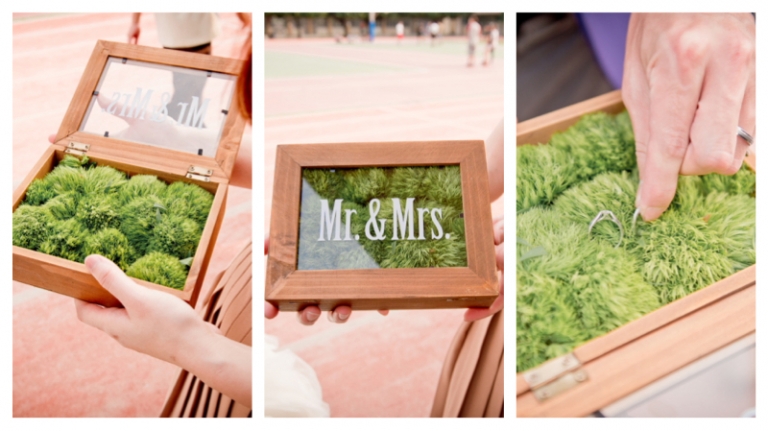 值得一提的是他們將婚戒放置在草球裡,有別於一般婚禮的枕頭蕾絲戒指托。