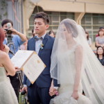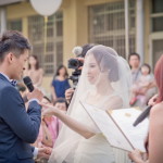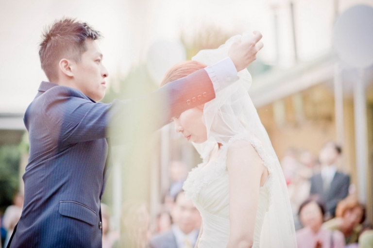 現在新郎為新娘揭紗…