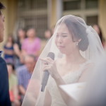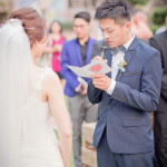 兩個人從交往到下定決心結婚在一起生活,都需要相當多的努力,交換誓詞時兩人都哭了… 新娘Maggie還不忘幫新郎擦眼淚…