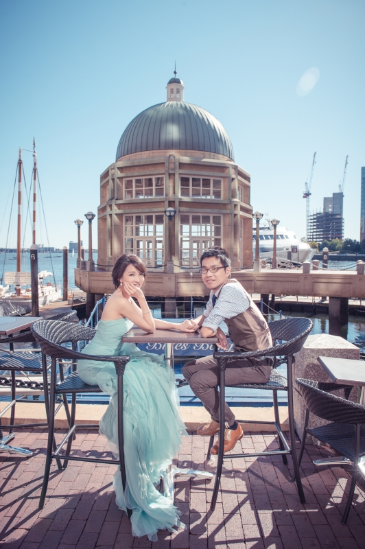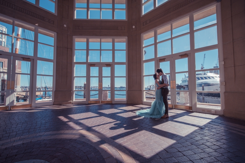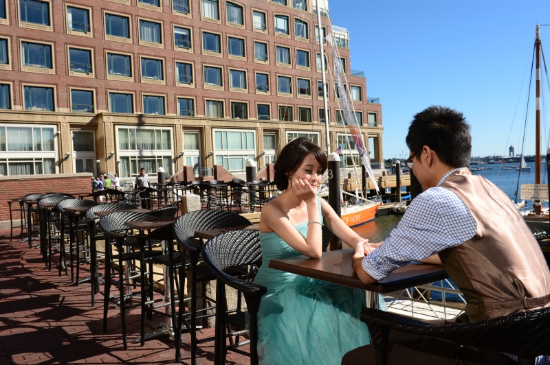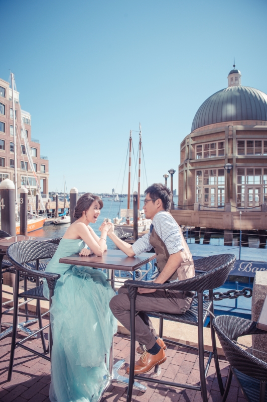 因此,到這拍攝對我來說是很大的挑戰,事前不斷地做功課,為的就是能讓新人留下美好的回憶。那天的拍攝,我們從Boston Harbor Hotel開始,它位在港口邊,有非常美的海景,這裡不論是白天